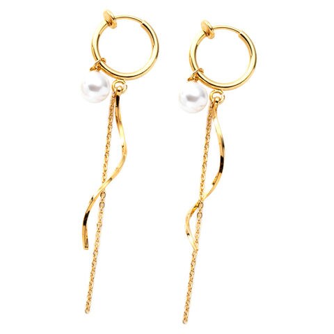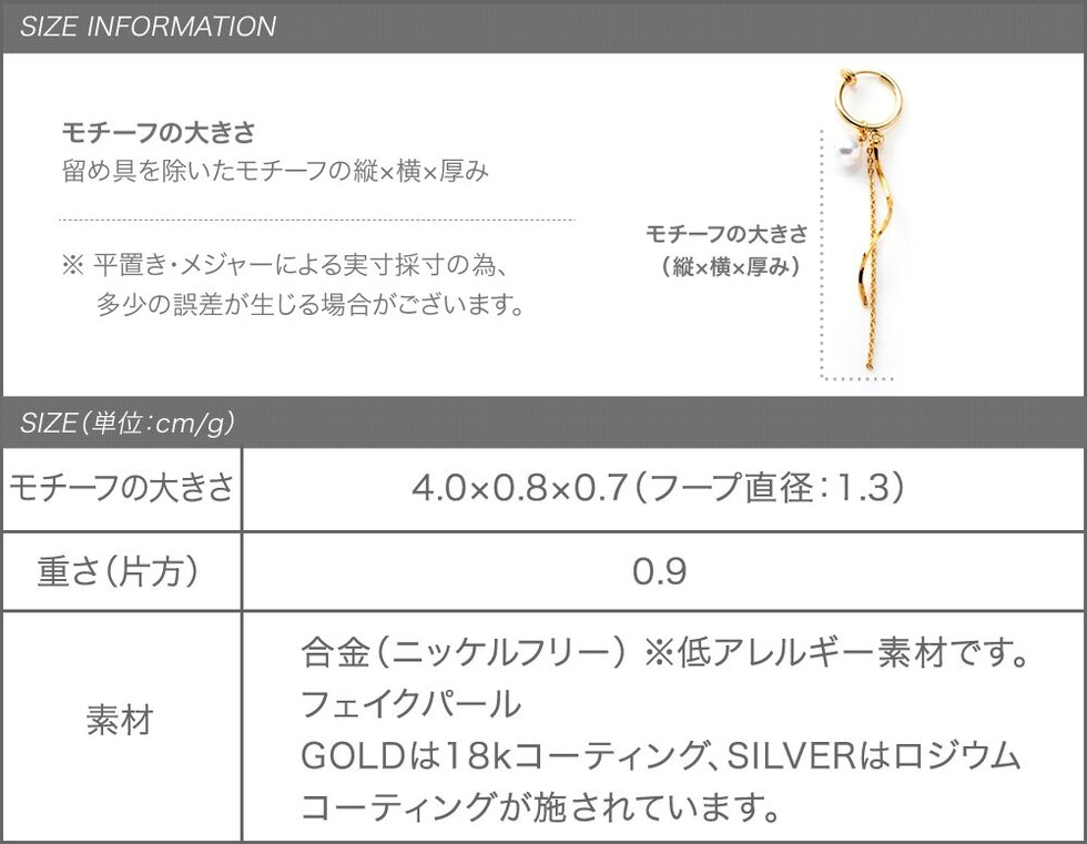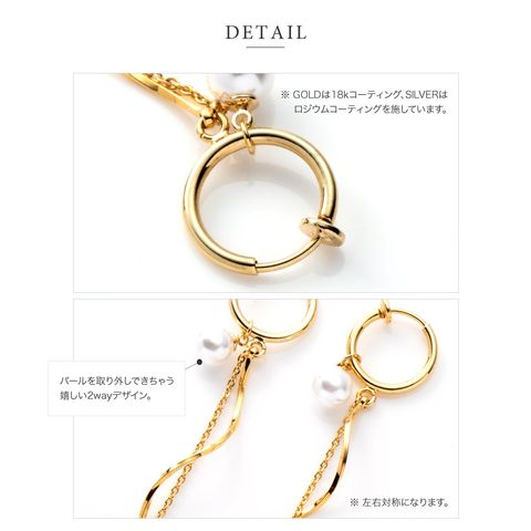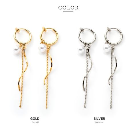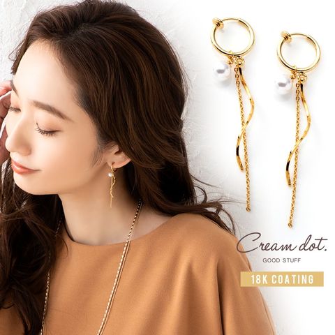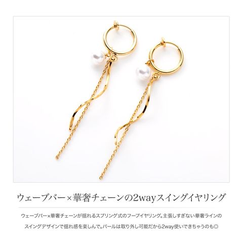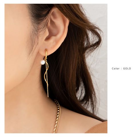 イヤリング 金属アレルギー ニッケルフリー レディース 2way バネ式 フープ パール 揺れる ウェーブバー チェーン cream dot ゆうパケット [ゴールド_イヤリング]