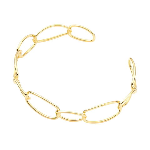 手元を大人っぽく演出してくれる変形チェーンモチーフのオープンバングル。