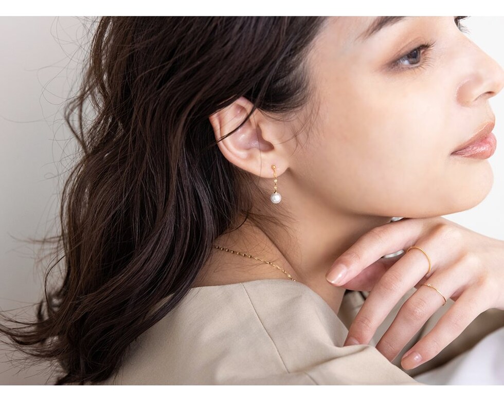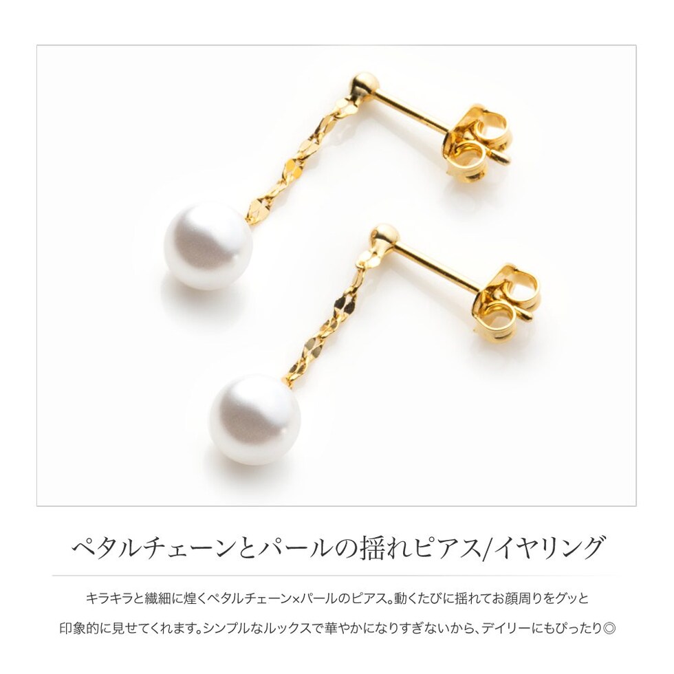 キラキラと繊細に煌くペタルチェーン×パールのピアス。