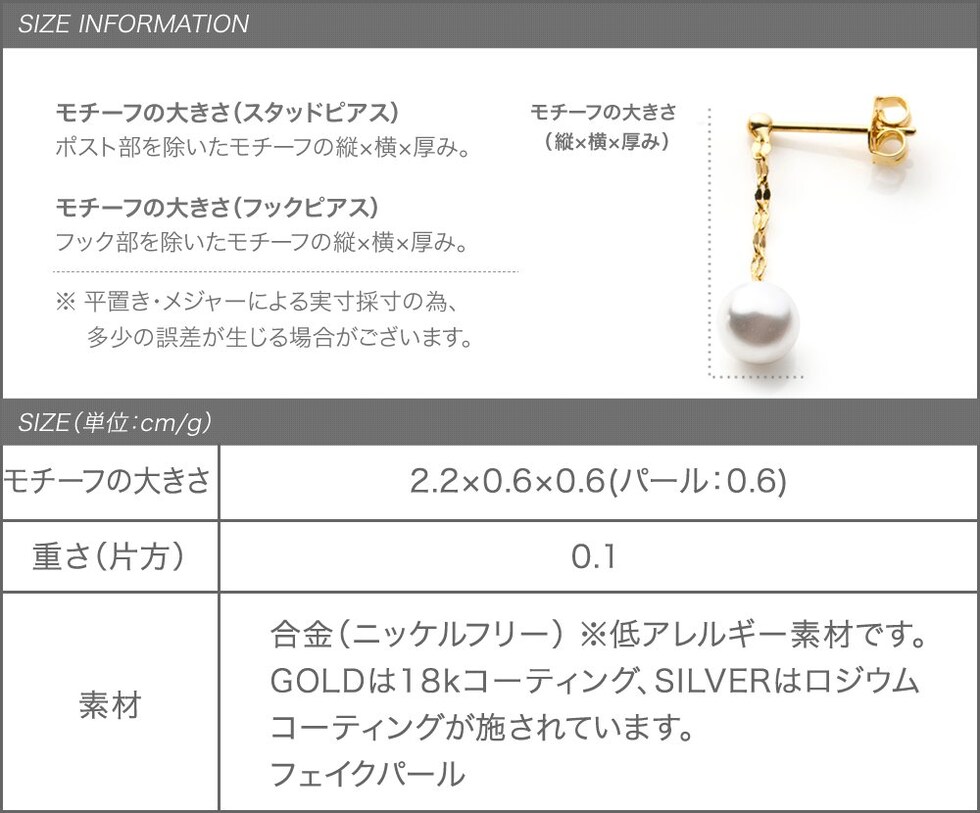 2.2cm×0.6cm×0.6cm(パール:0.6cm)