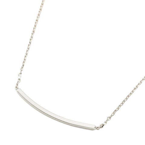 華奢なチェーンとシンプルな緩やかアーチラインのメタルバーが上品なネックレス。女性のデコルテを美しく引き立ててくれる洗練されたデザインが魅力。どんなコーデとも相性がよいので、デイリーにオススメです。