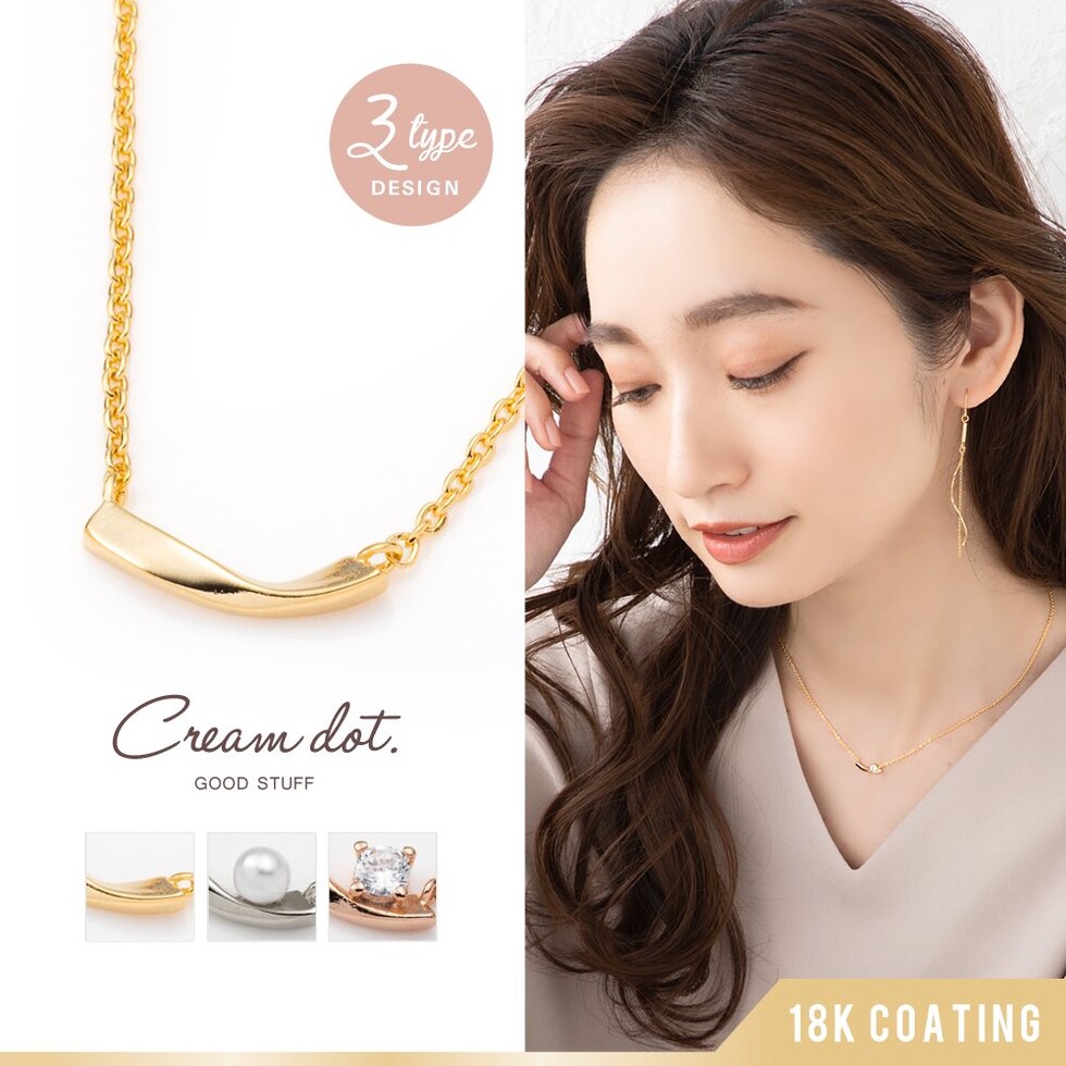 ネックレス 金属アレルギー ニッケルフリー レディース 3タイプ ショート チェーン パール ビジュー ひねりバー cream dot ゆうパケット [A:シルバー_ワンサイズ]