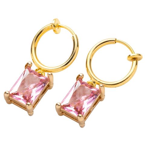 ピアス イヤリング 金属アレルギー ニッケルフリー レディース ピアス見え 揺れる フープ フック キュービックジルコニア ビジュー 多面カット ドロップ スクエア cream dot ゆうパケット [B:ピンク_イヤリング]