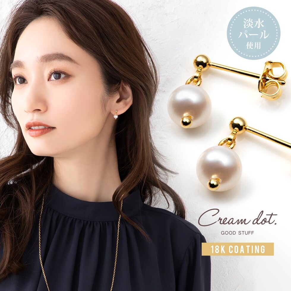 ピアス 金属アレルギー ニッケルフリー レディース 揺れる 淡水パール 一粒パール cream dot ゆうパケット [ゴールド_ピアス]