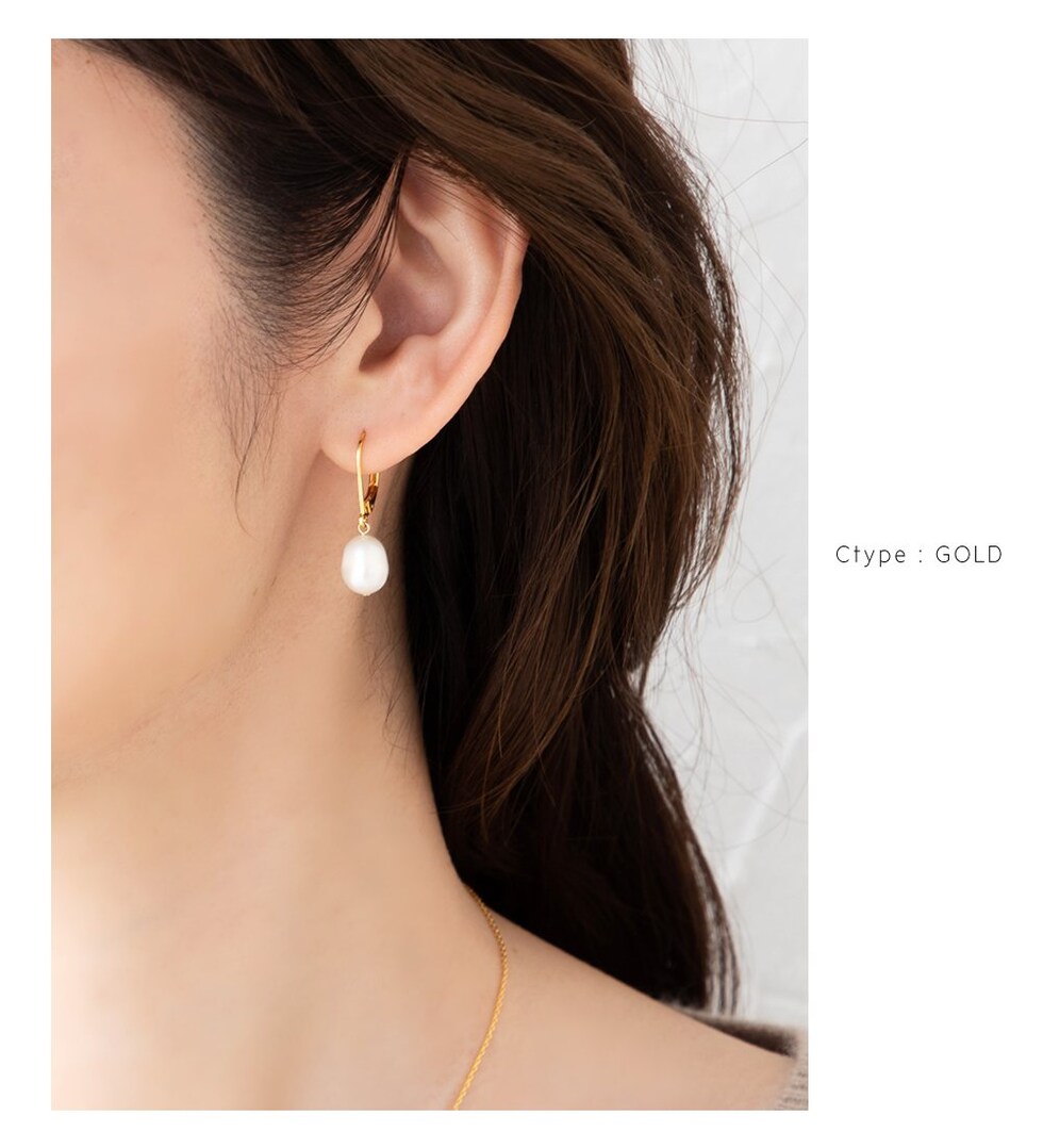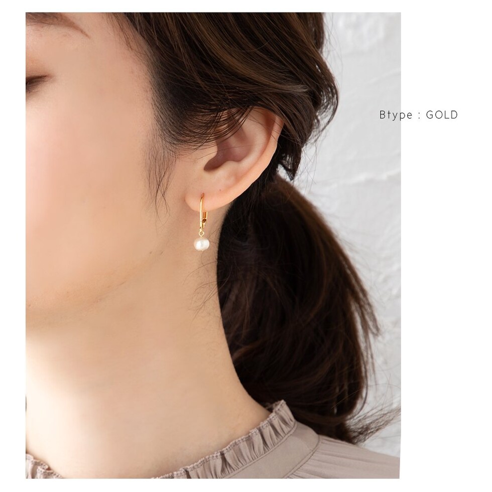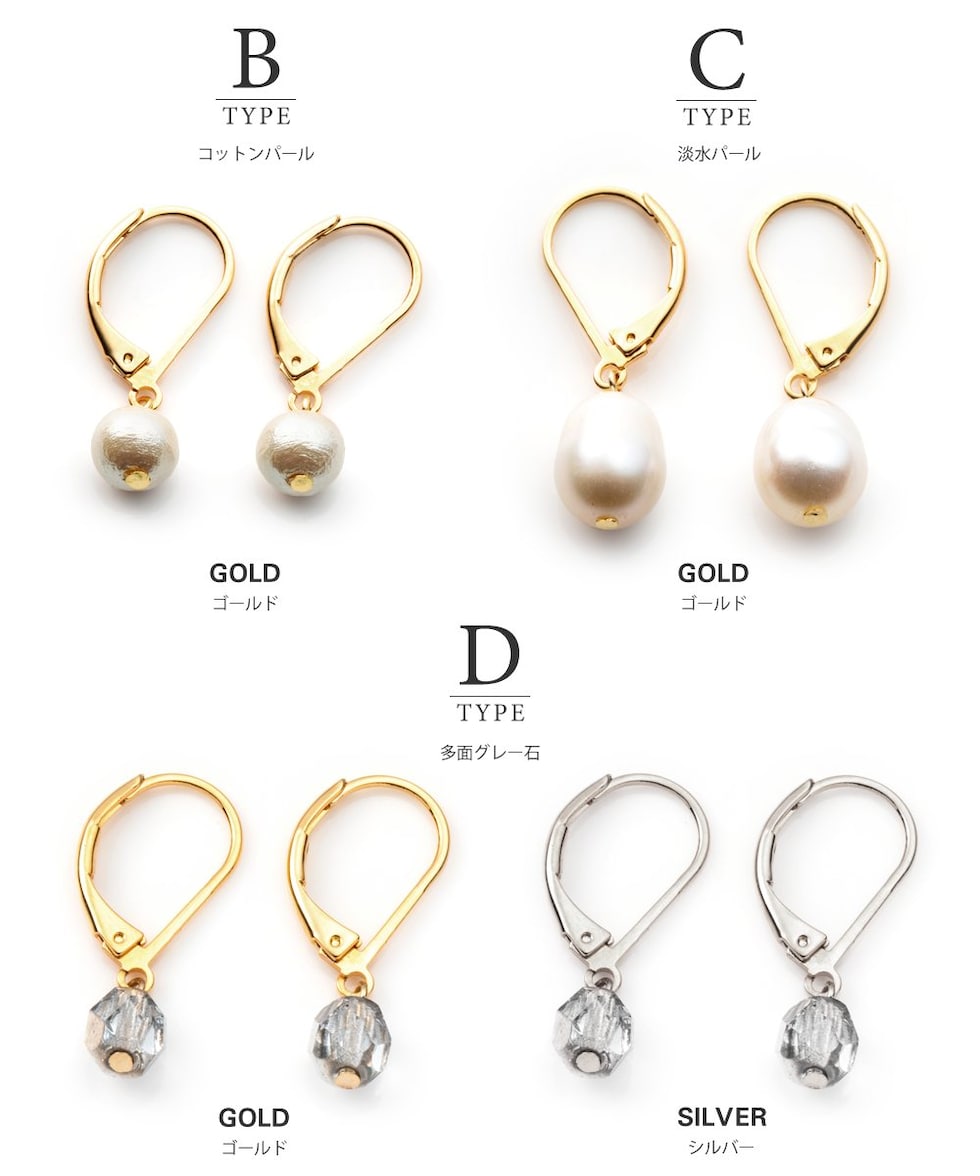ピアス 金属アレルギー ニッケルフリー レディース 4タイプ フレンチフック 淡水パール ビジュー コットンパール cream dot ゆうパケット [A:ゴールド_ピアス]