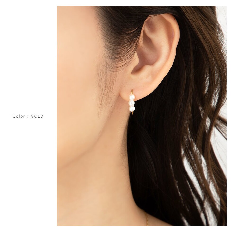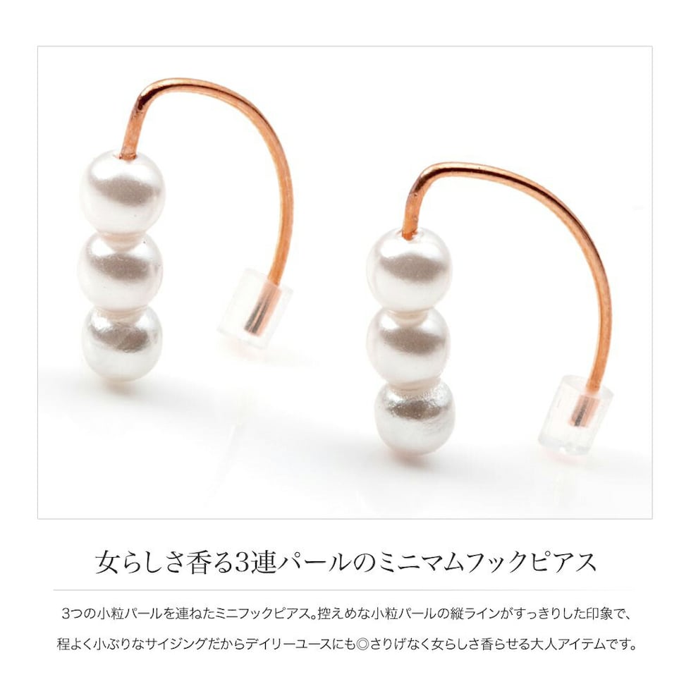 ピアス 金属アレルギー ニッケルフリー レディース フック パール 3連 ミニマム cream dot ゆうパケット [ピンクゴールド_ピアス]
