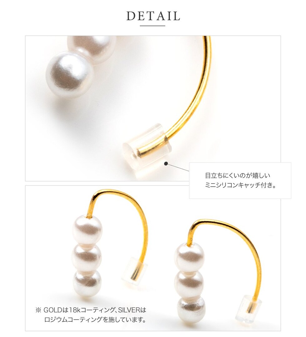 控えめな小粒パールの縦ラインがすっきりした印象で、程よく小ぶりなサイジングだからデイリーユースにも◎
