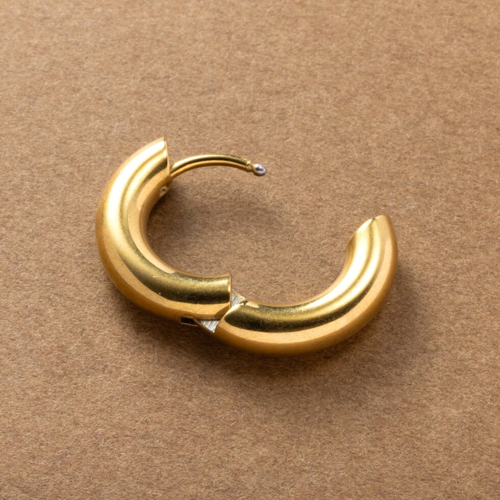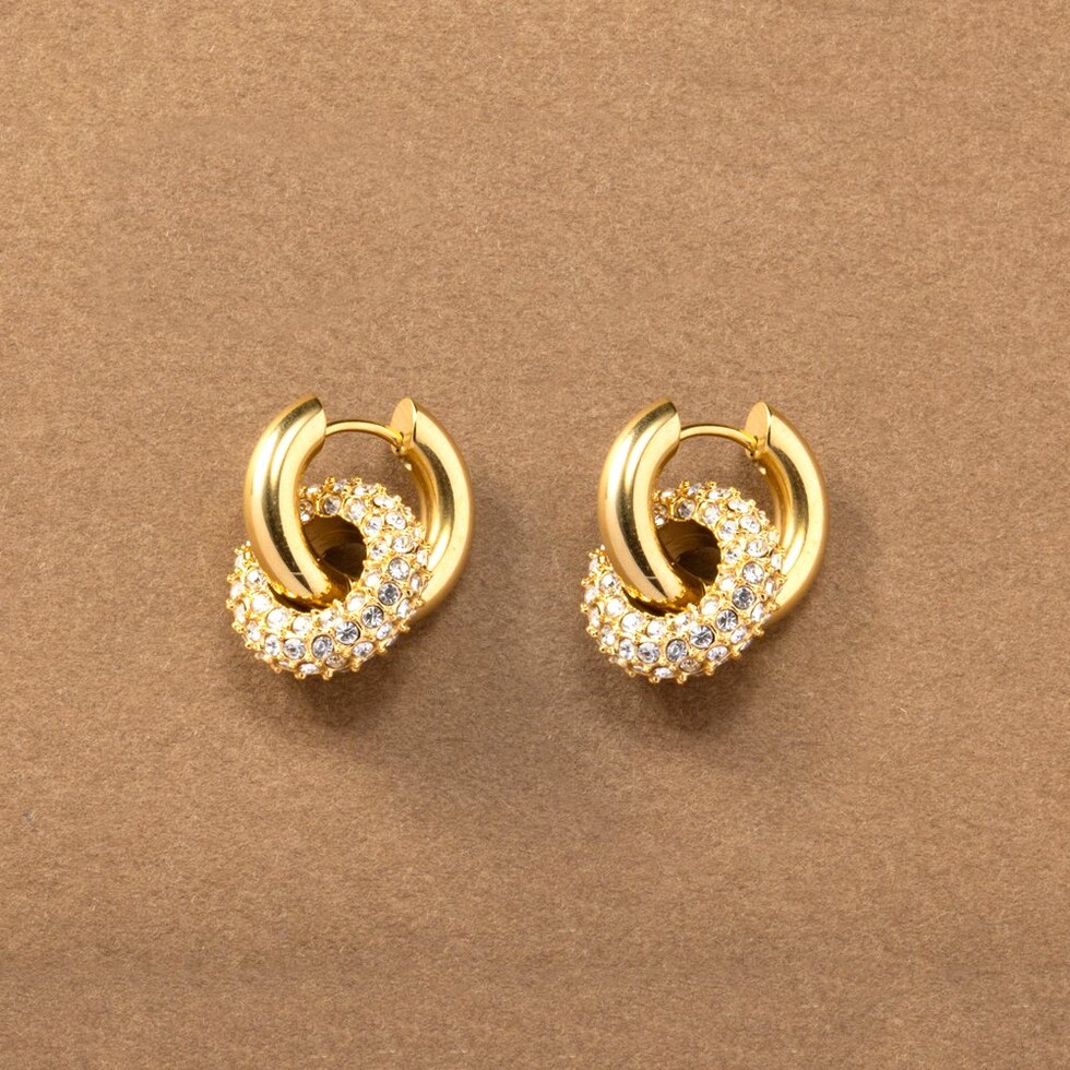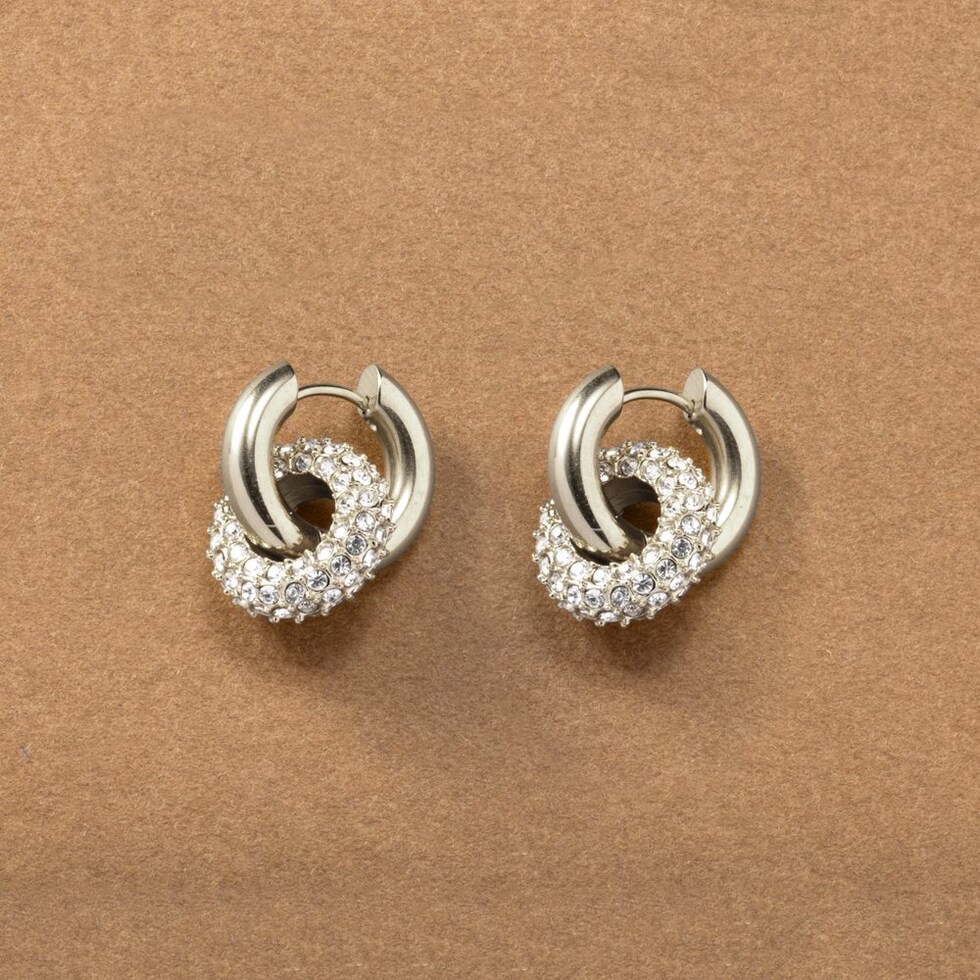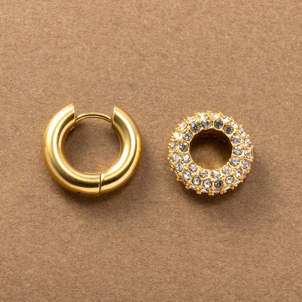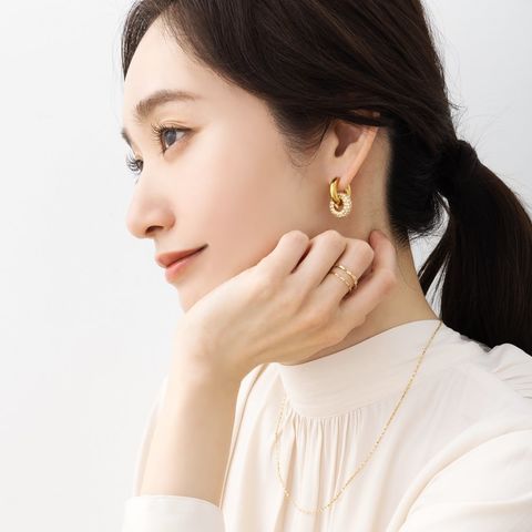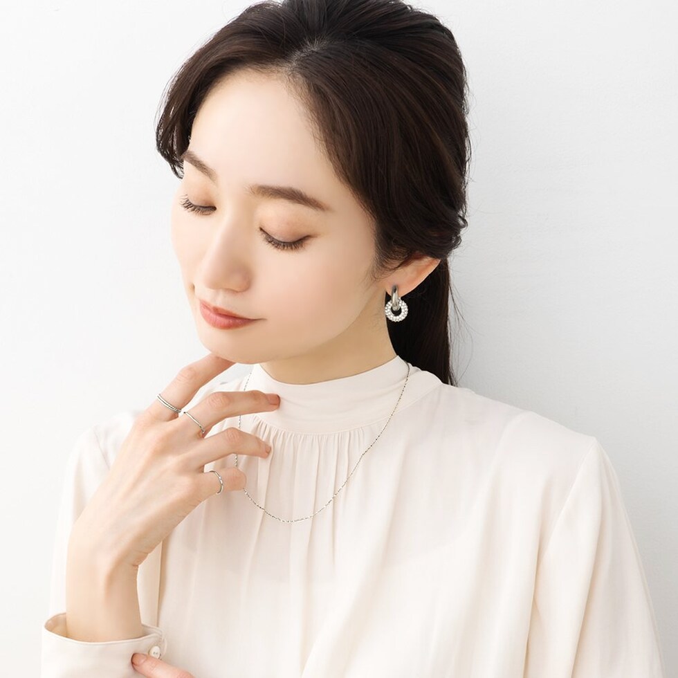 ごつめフープにパヴェリングを通したダブルリングのステンレス製ピアス。パヴェリングを取り外してシンプルなフープピアスとしても使える2wayデザインが嬉しい。錆びにくいステンレス製でデイリーに活躍しそう◎