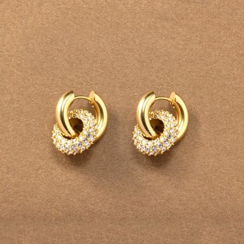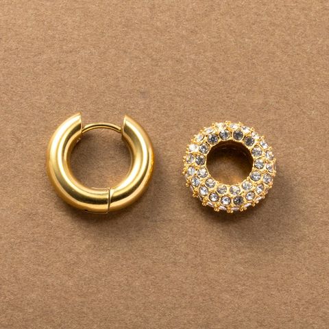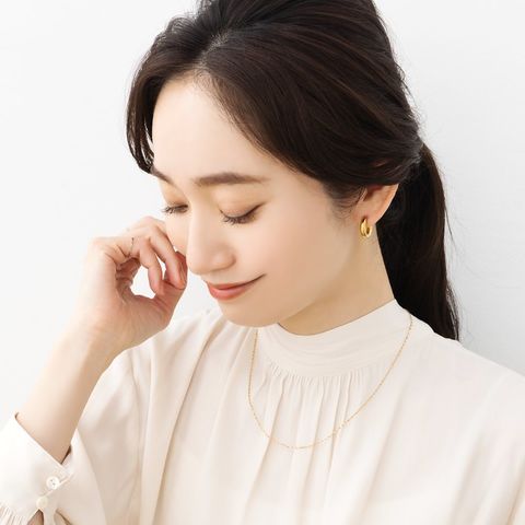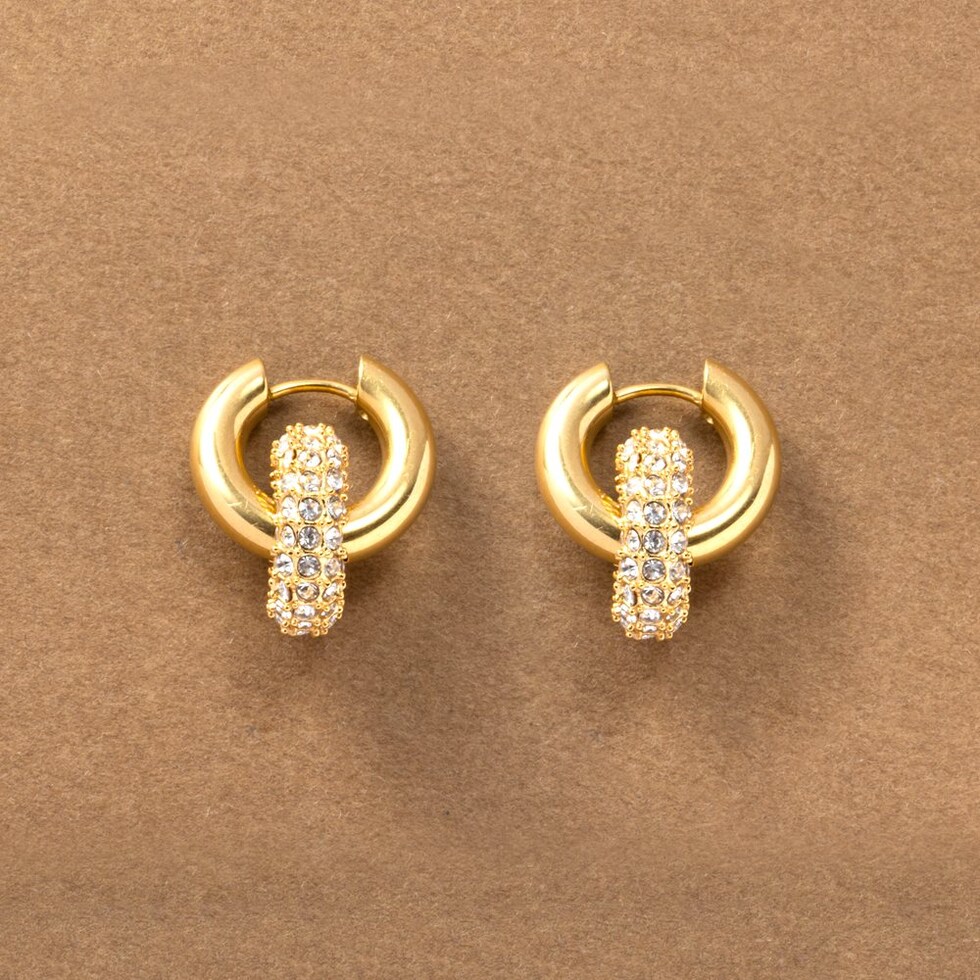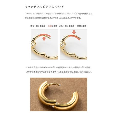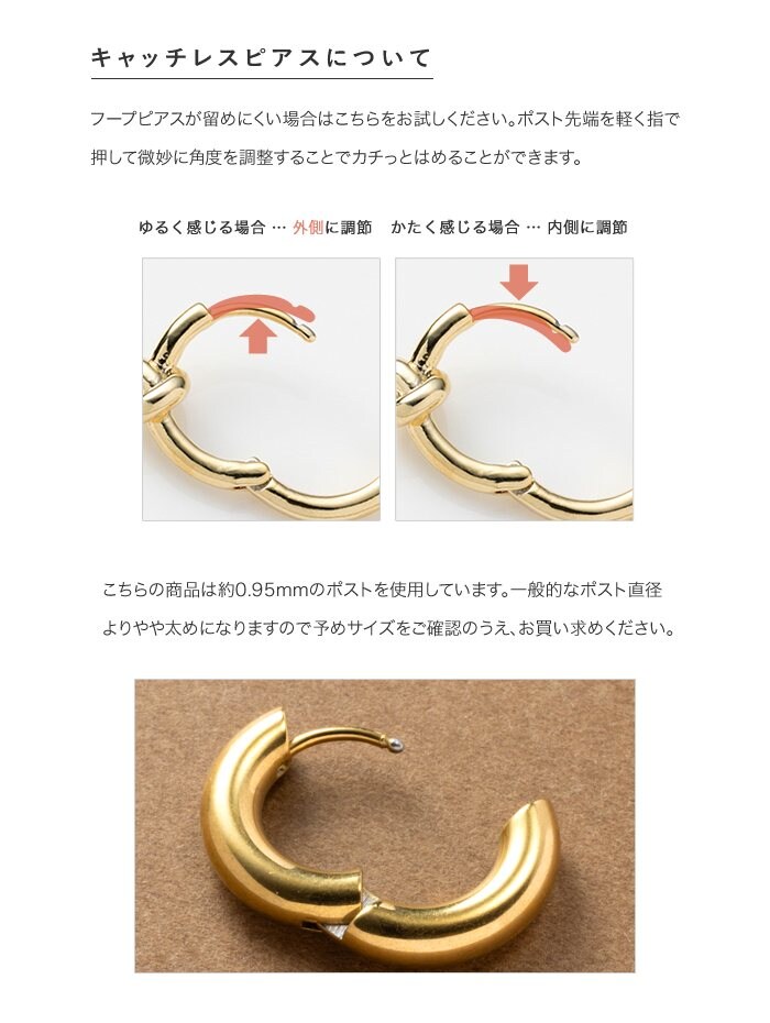 ピアス ステンレス 金属アレルギー サージカルステンレス レディース フープ つけっぱなし パヴェ ビジュー 2way 二連 ガラス キャッチレス リング ごつめ cream dot ゆうパケット [ゴールド_ピアス]