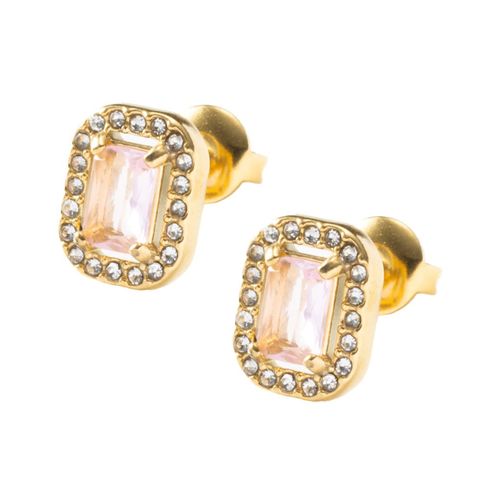 ピアス ステンレス 金属アレルギー サージカルステンレス レディース つけっぱなし スクエア 小ぶり 小さめ ビジュー ガラス cream dot ゆうパケット [ゴールド×ピンク_ピアス]