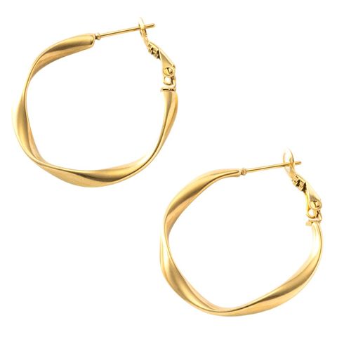 フープにひねりを効かせたシンプルなフォルムが大人っぽいステンレス製ピアス。カチッと留まる開閉式のキャッチレスデザイン。耳元にさりげなくアクセントをプラスしてくれるオンオフ問わないデザインで使い勝手の良い逸品。錆びにくいステンレス製でデイリーに活躍しそう◎