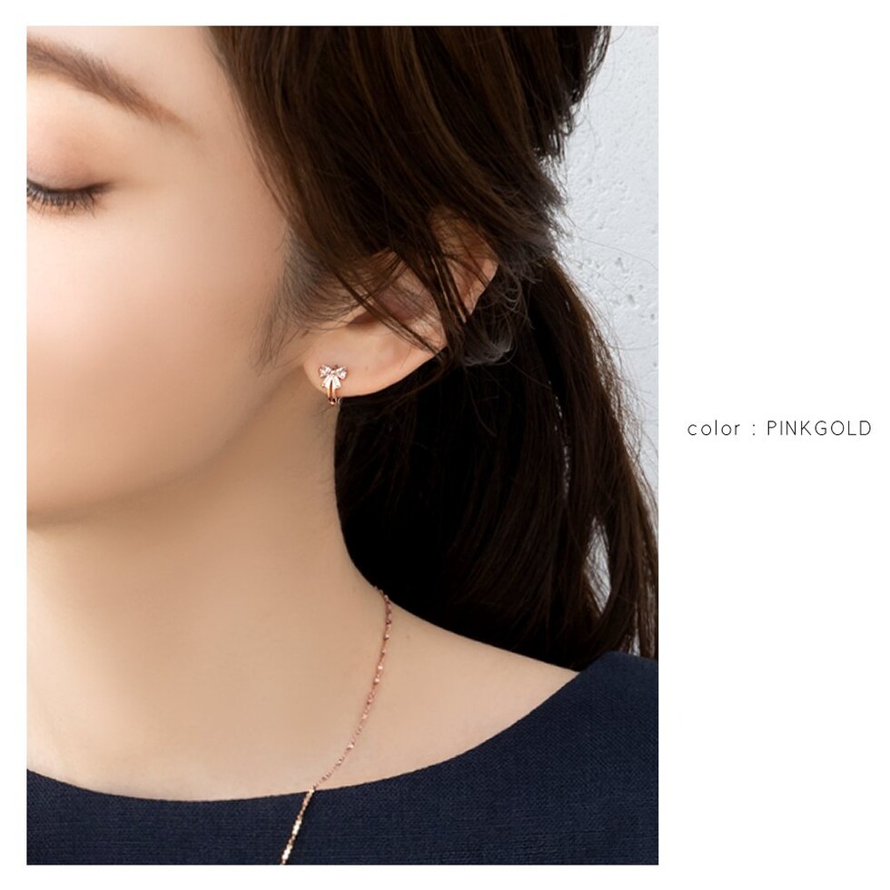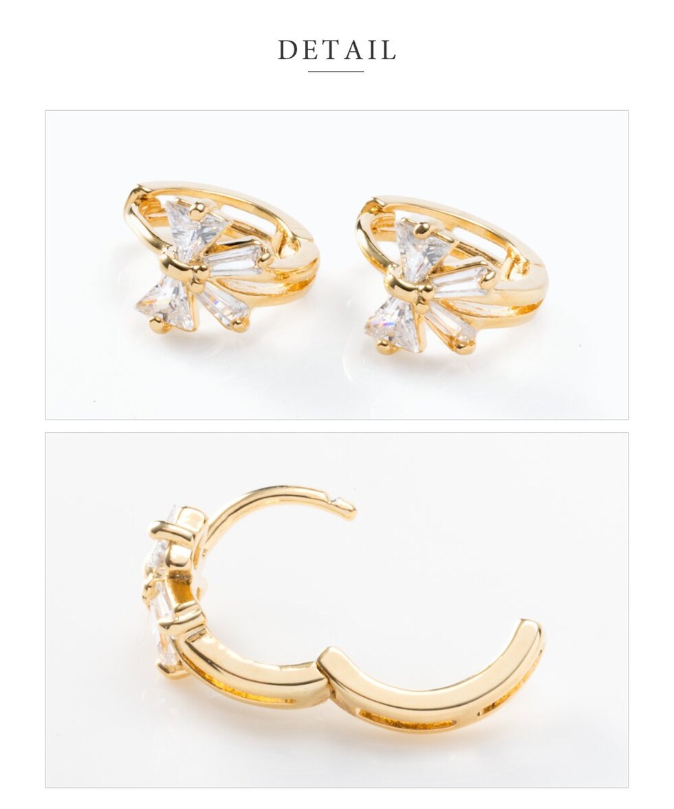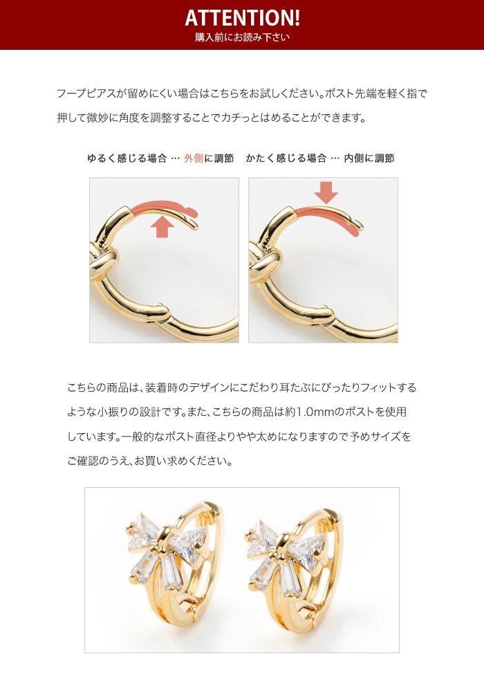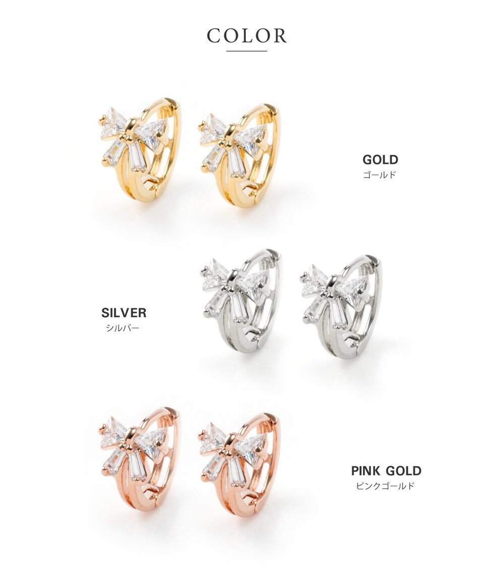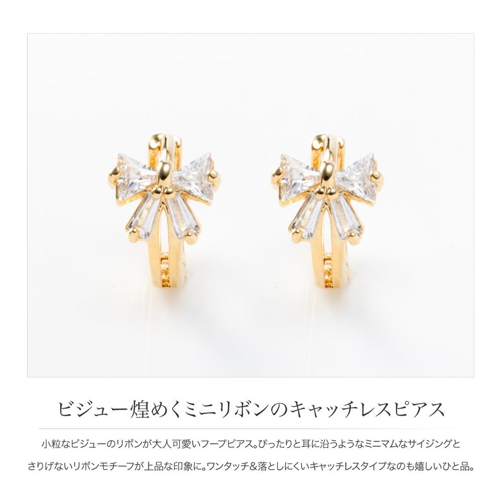 ピアス レディース フープ 小さめ 極小 中折れ キャッチレス キュービックジルコニア リボン cream dot ゆうパケット [ピンクゴールド_ピアス]