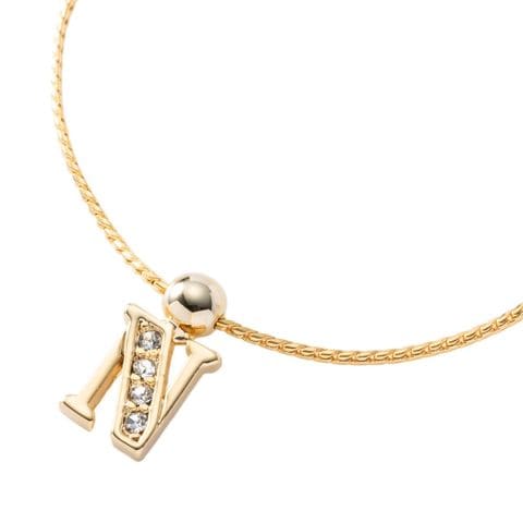 スライドアジャスターでお好みの長さに調節できるアンクレット。イニシャルにあしらったラインストーンと華奢なチェーンが足元にさりげないアクセントをプラス◎着脱簡単でこれからの季節にぴったりなアイテムです。