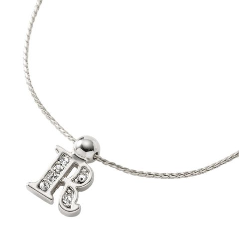 アンクレット レディース アンクレット イニシャル ラインストーン ビジュー チェーン フリーアジャスター 調整可能 スライド アルファベット ガラス スライドアジャスター cream dot ゆうパケット [シルバー_R]