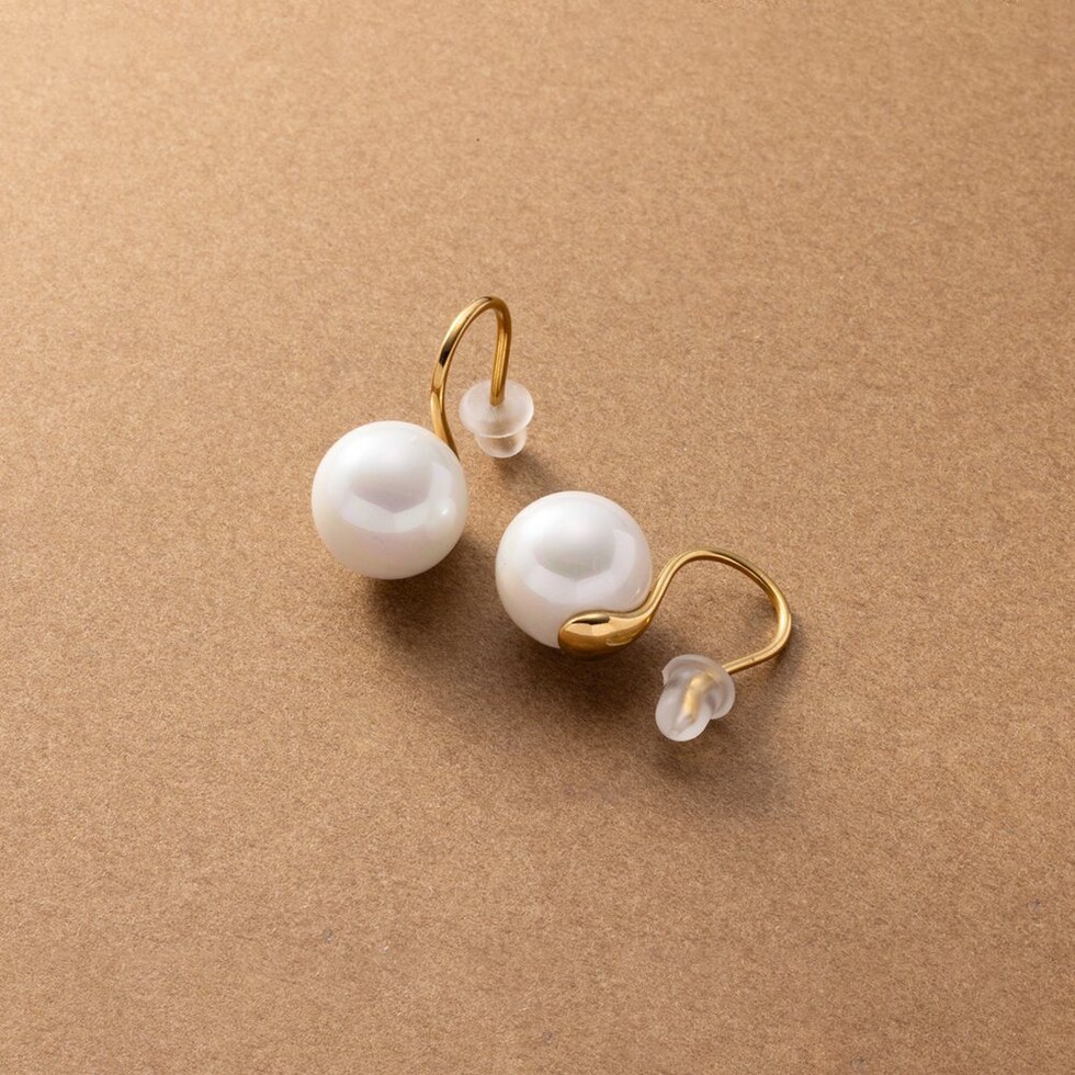 ころんとしたフォルムが可愛い一粒パールのフックピアス。使い勝手の良い1cmパールと、耳に添うシルエットが絶妙なバランスのひと品です。高見えする艶やかなパールがお顔周りを女性らしい華やかな印象に。錆びにくく傷に強いステンレス製で長く愛用頂けます。
