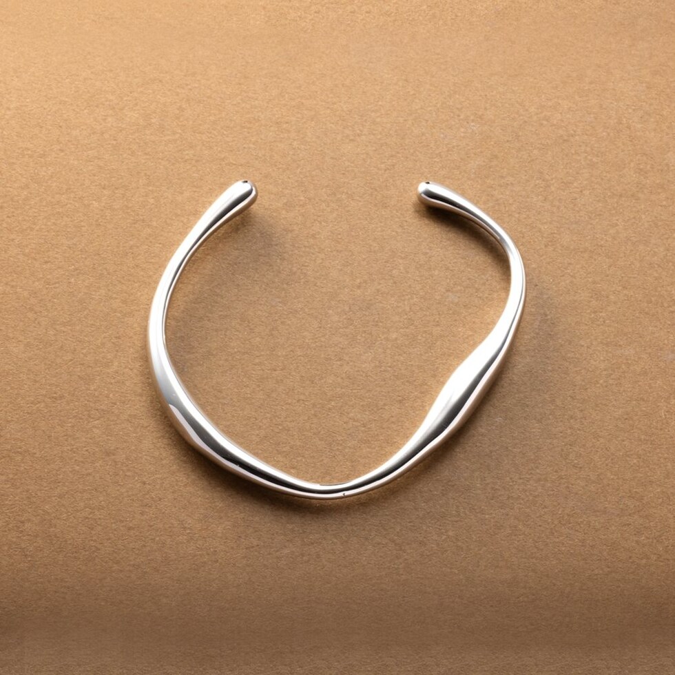 ニュアンス漂うステンレス製カーヴィーバングル。ぐにゃりと歪にカーブした今っぽさ抜群のデザインとずっしり重厚感たっぷりのフォルムで高見えしそう◎錆びにくいステンレス製でデイリーに大活躍間違いナシ。