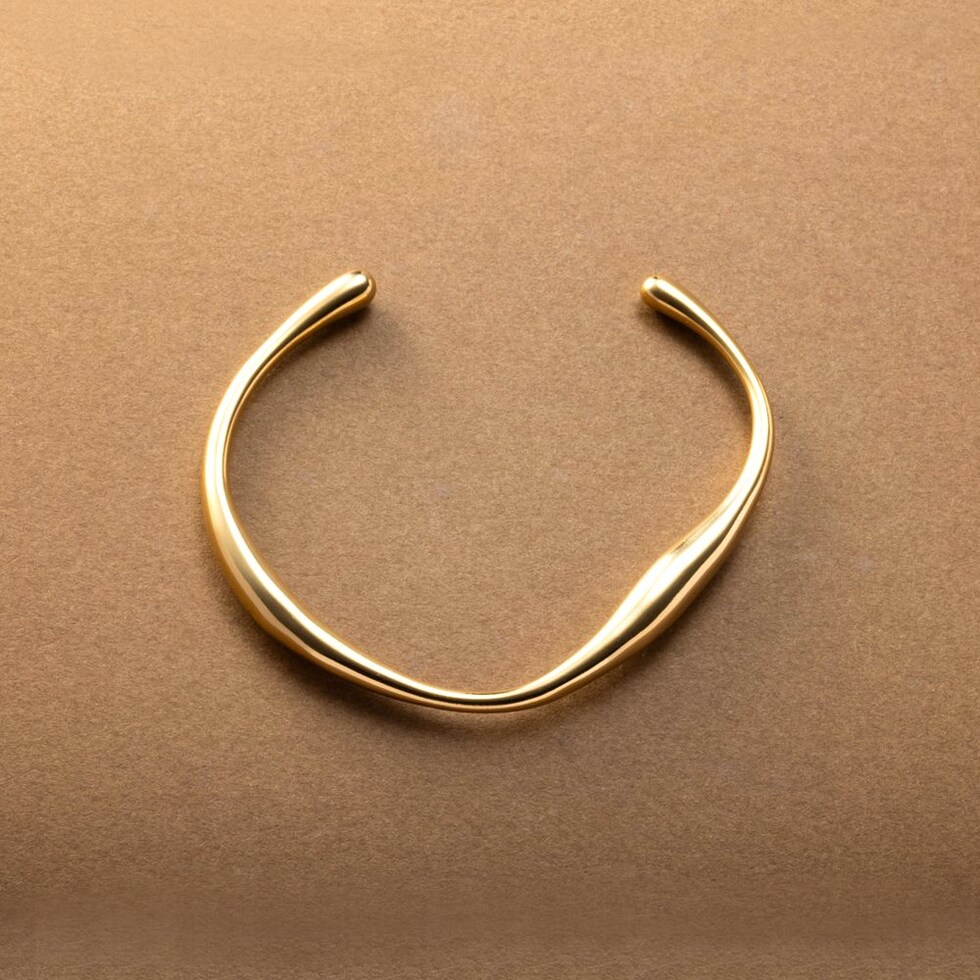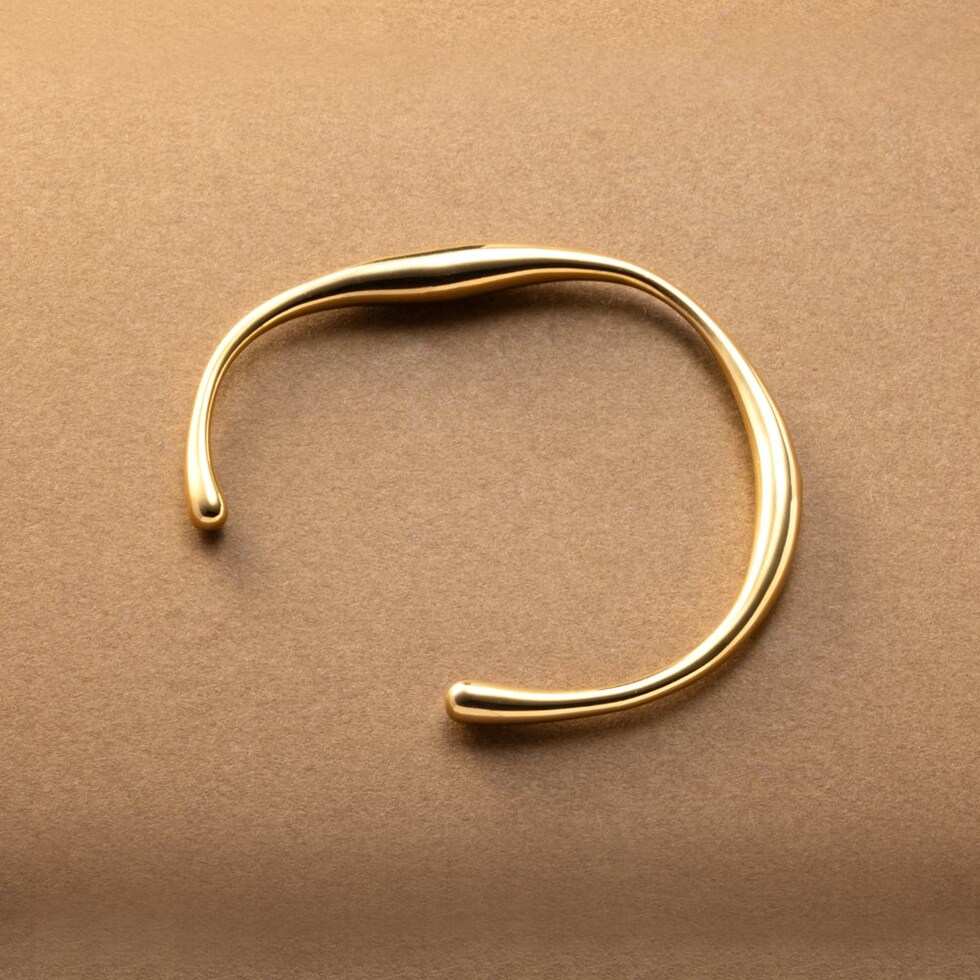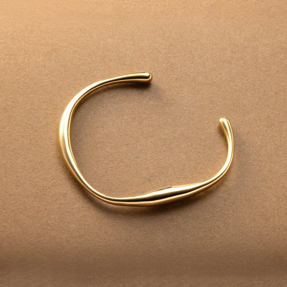 バングル ステンレス 金属アレルギー サージカルステンレス レディース つけっぱなし カーブ 変形 オープン cream dot ゆうパケット [ゴールド_ワンサイズ]
