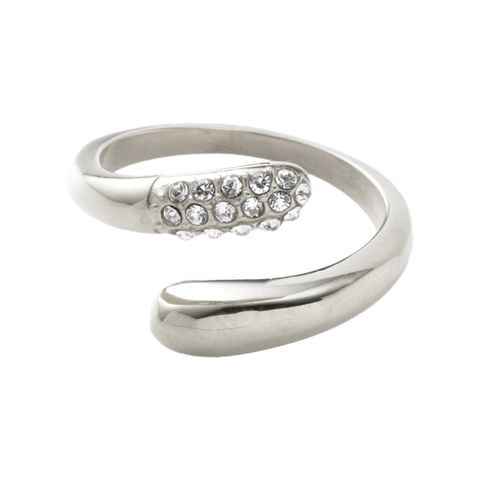リング 指輪 ステンレス 金属アレルギー サージカルステンレス レディース つけっぱなし パヴェ ビジュー ドロップ フォークリング フリーサイズ cream dot ゆうパケット [シルバー_フリーサイズ]