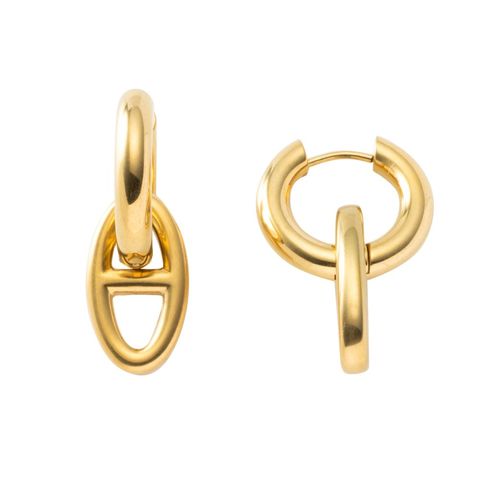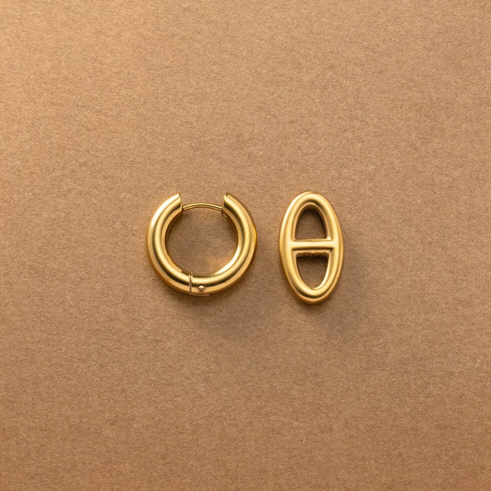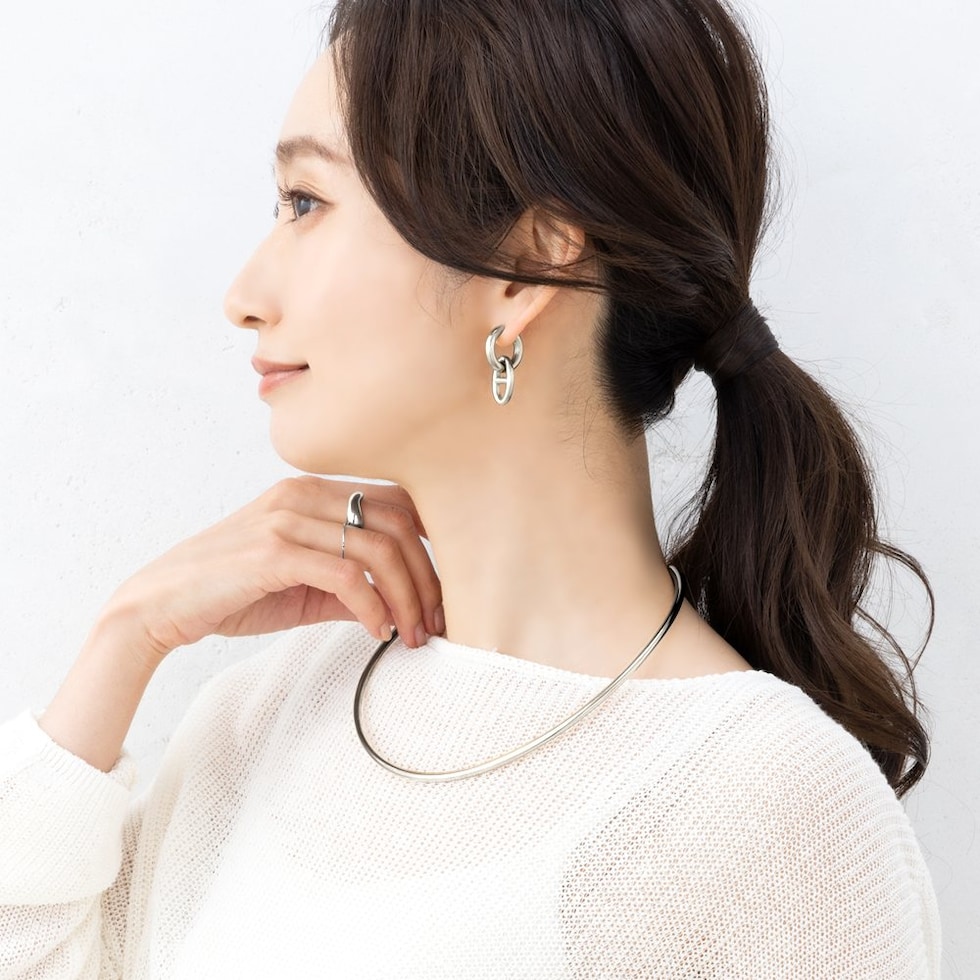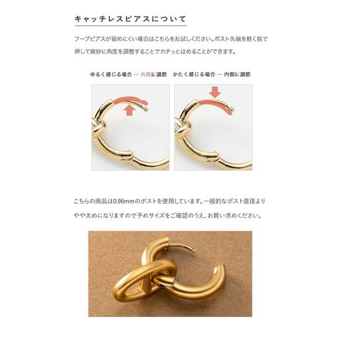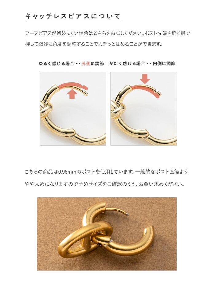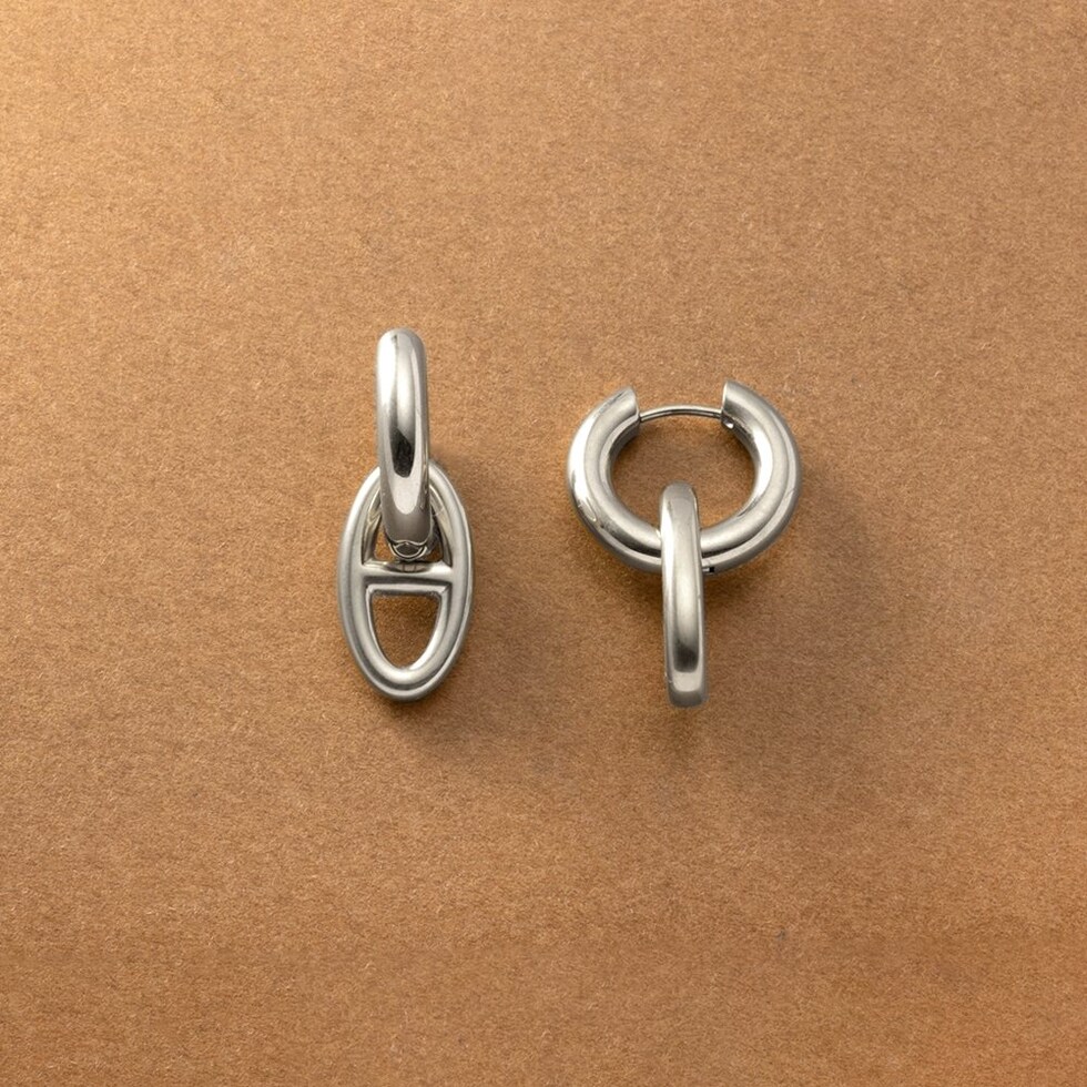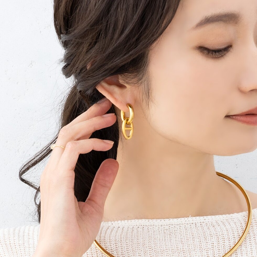 アンカーチェーンをモチーフにしたキャッチレスピアス 。いつものコーデにプラスするだけでトレンド感がアップします。モチーフを取り外して、シンプルなフープピアスとしても使える2WAY仕様◎錆びにくく傷に強いステンレス製で、長時間の着用も安心の低アレルギー素材です。