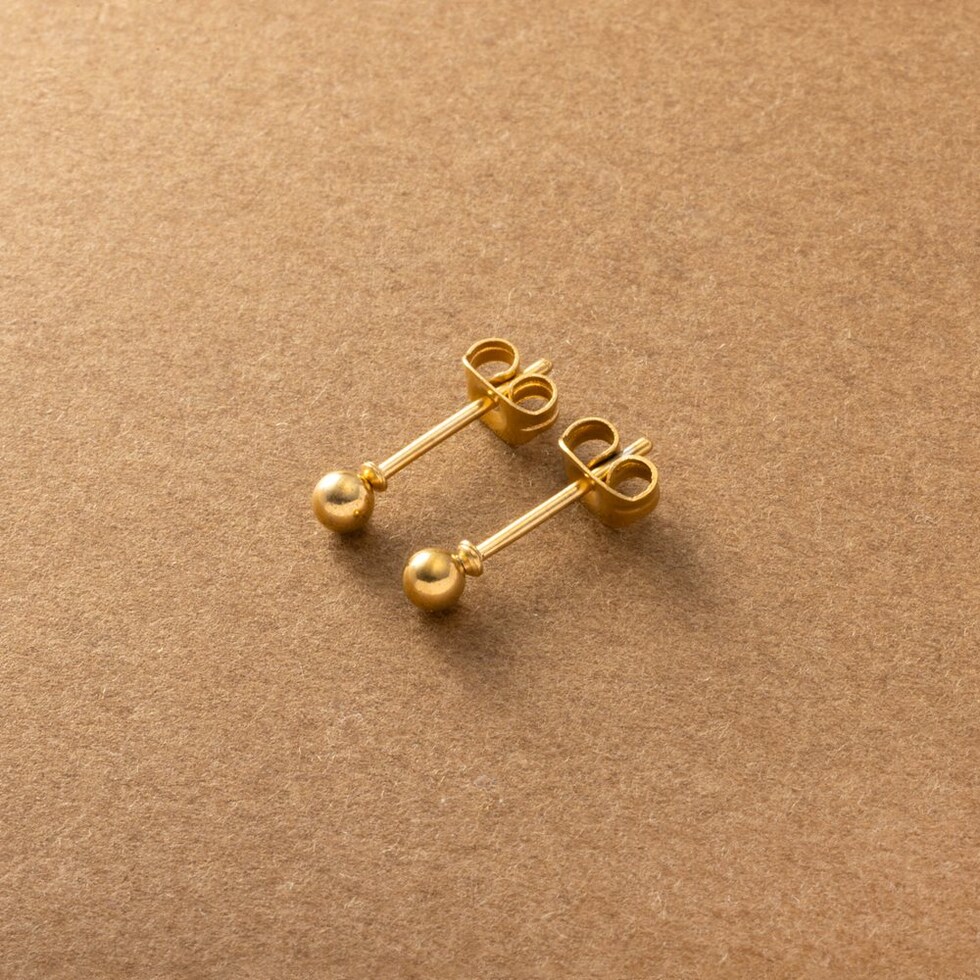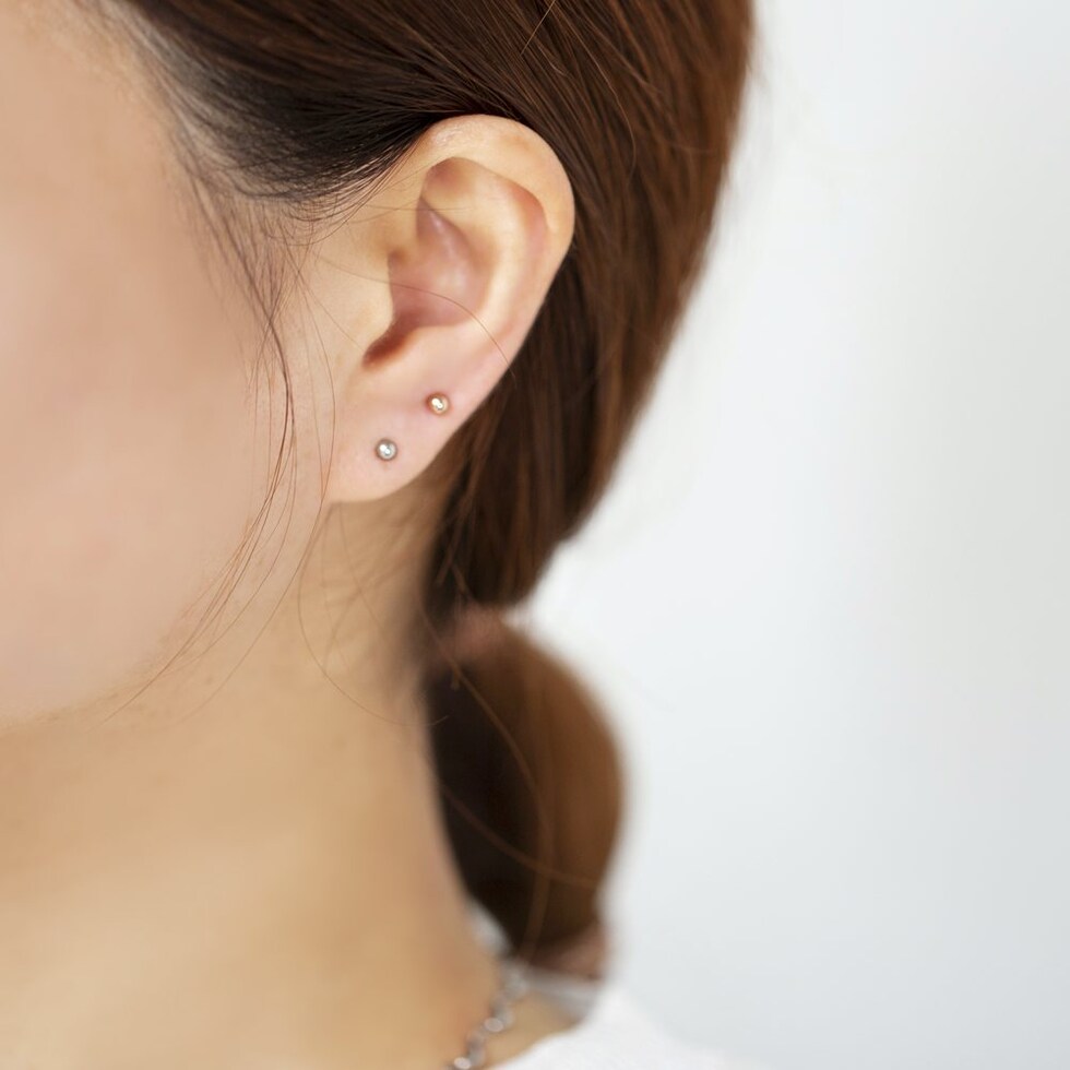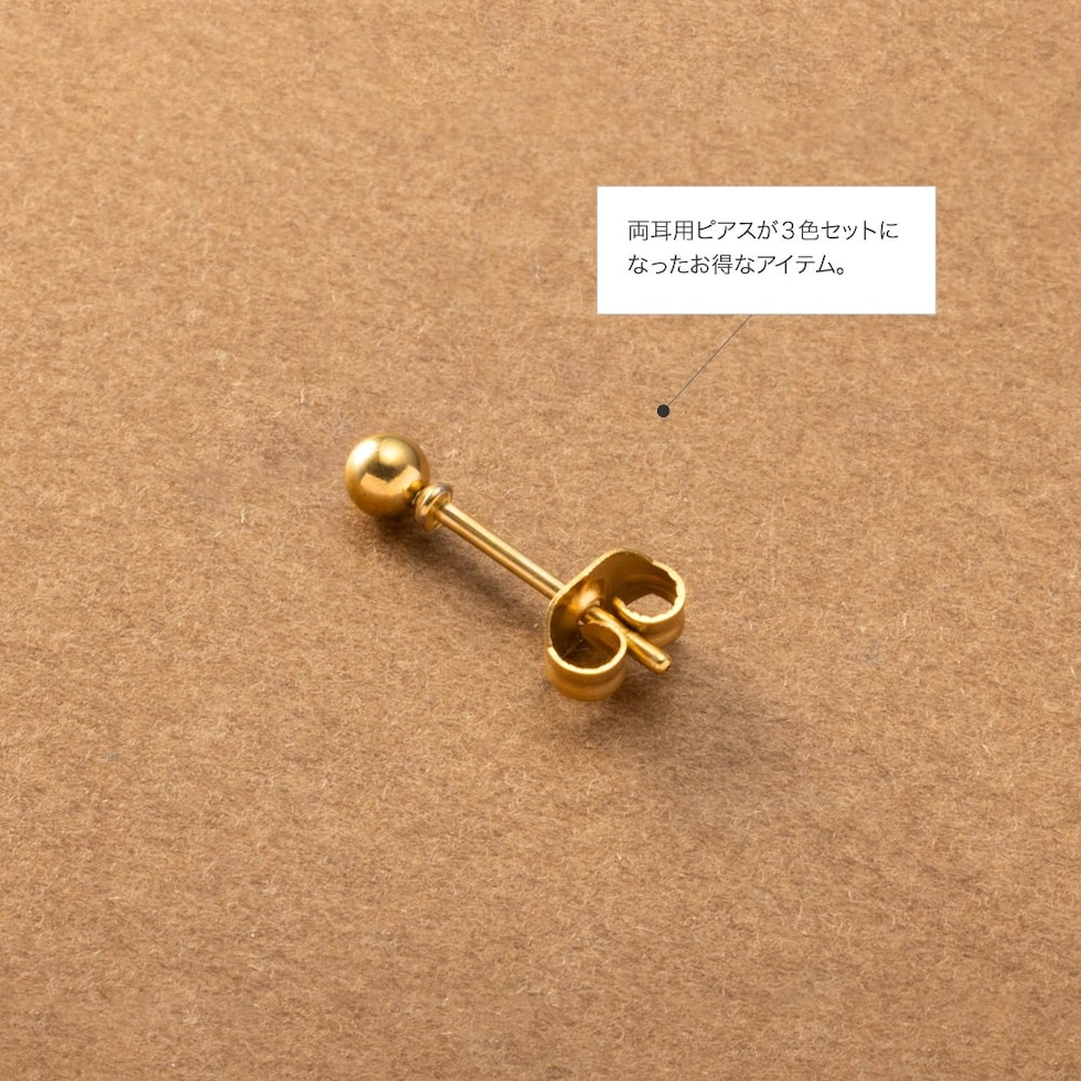 カラー違い3点セットのスフィアデザインスタッドピアス 。上品でシンプルなデザインは、コーデを選ばずタイムレスに身につけられるアイテム。他のピアスやカフと合わせて重ねづけも楽しめます。錆びにくく傷に強いステンレス製で、長時間の着用も安心の低アレルギー素材です。