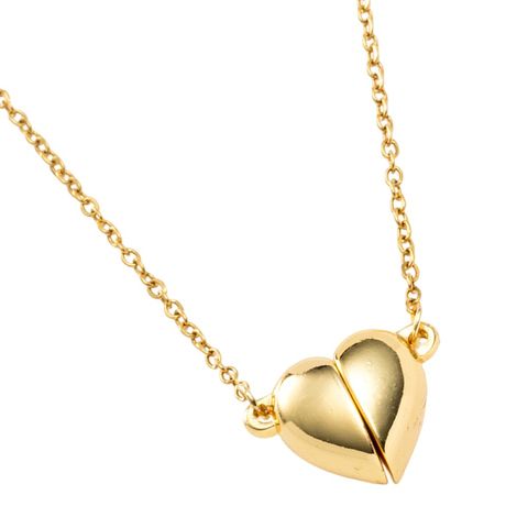 ぷっくりマグネットハートのステンレス製ネックレス。マグネットでくっついてぱっくり割れるメタルハートが今っぽい女心くすぐる逸品。錆びにくいステンレス製でデイリーに活躍しそう。