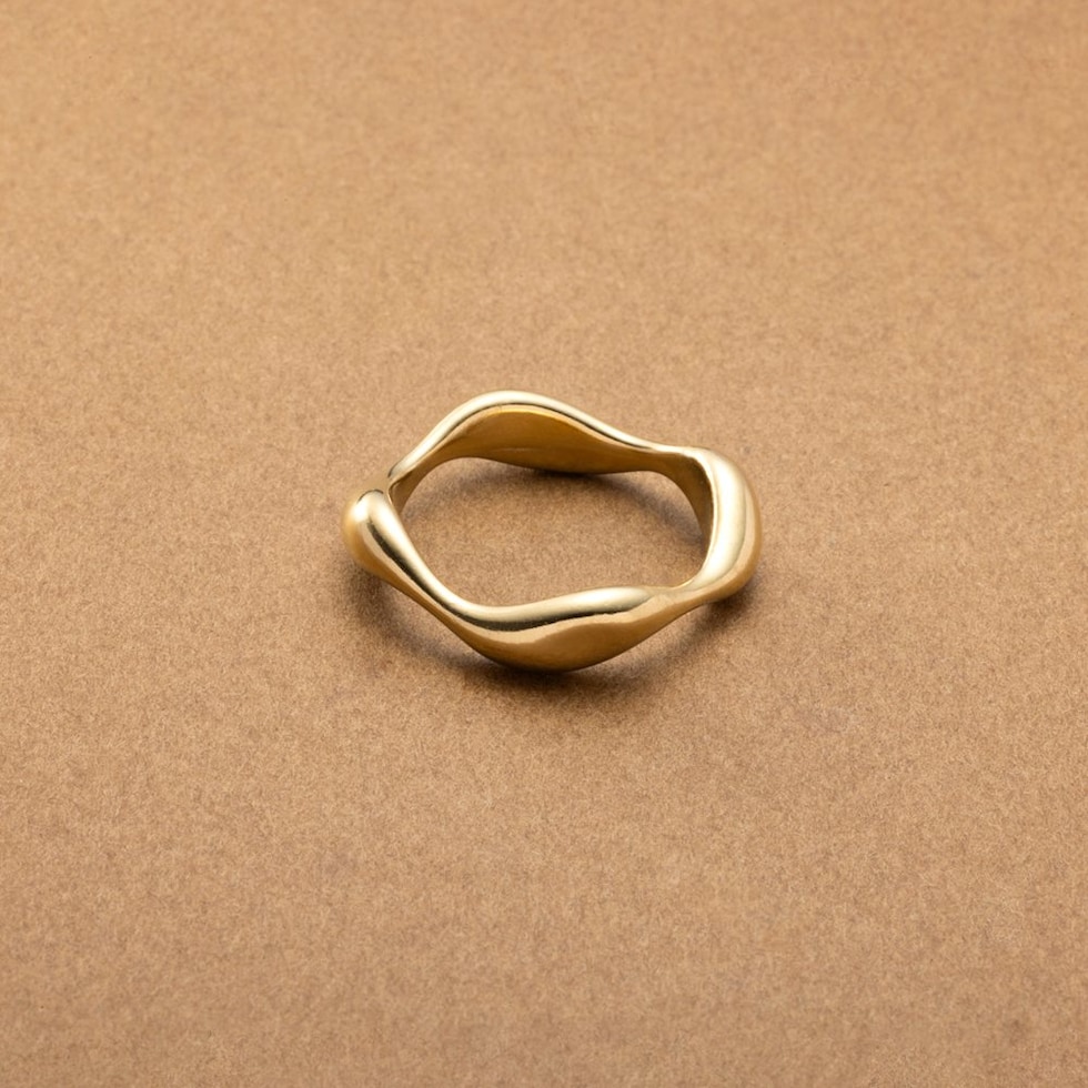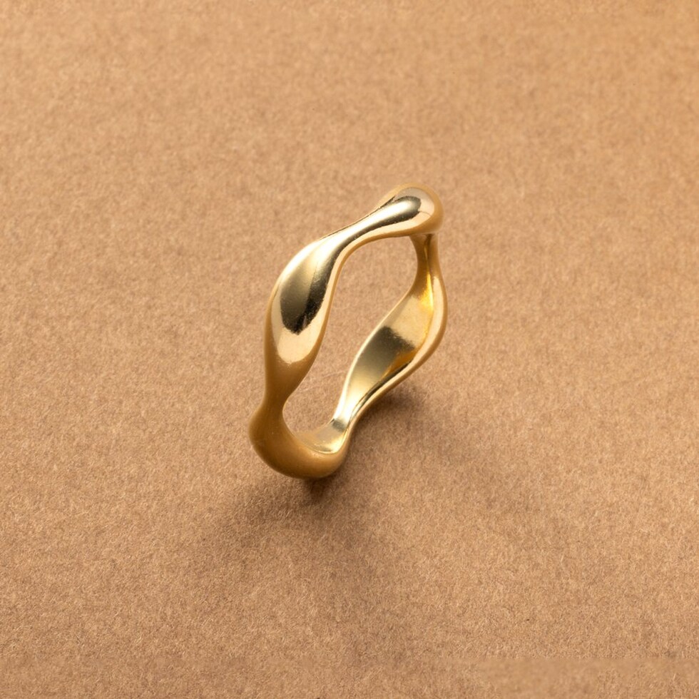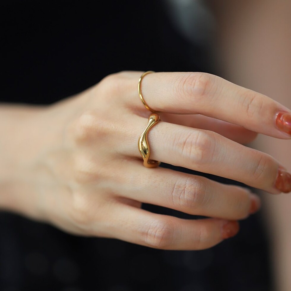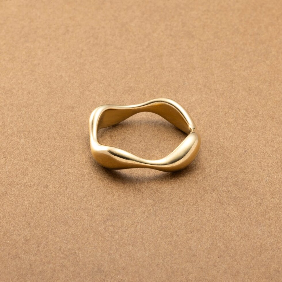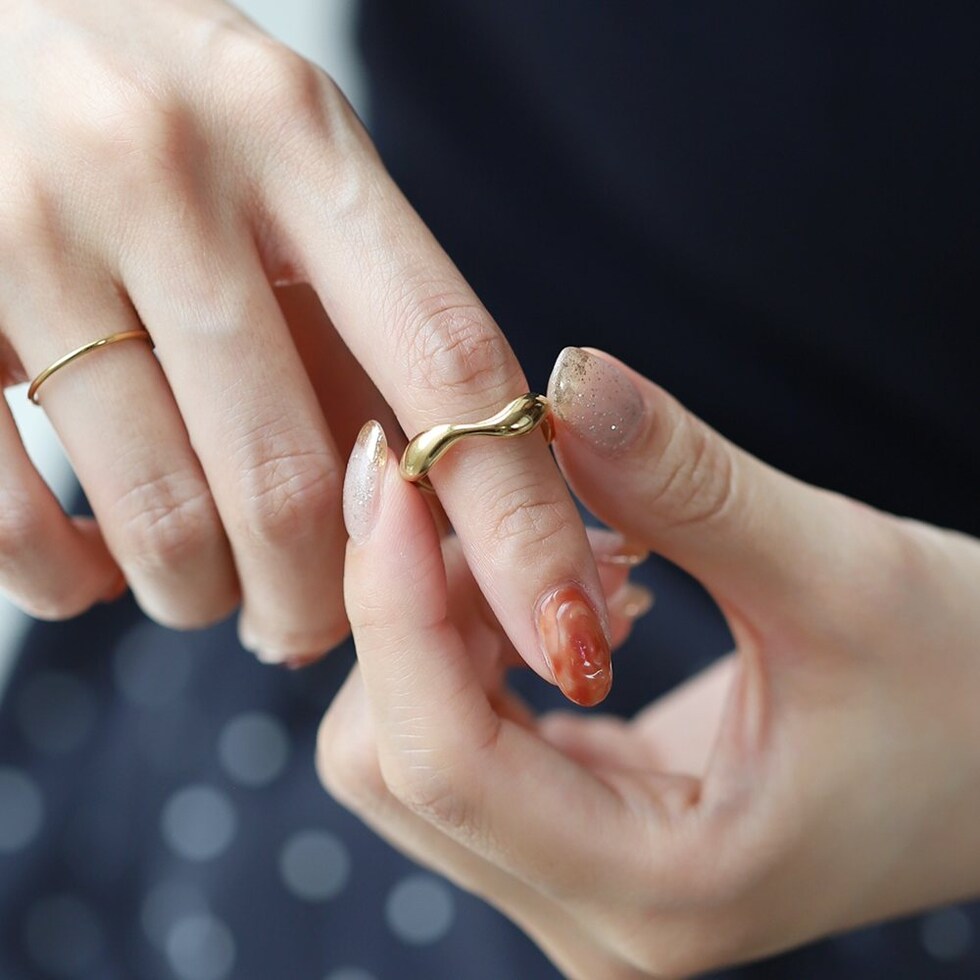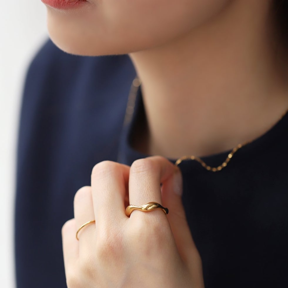 緩やかにウェーブした変形メタルラインがニュアンスたっぷりなデザインリング。角度によって表情を変えるリングは手元に存在感をプラスしてくれます。錆びにくく傷に強いステンレス製で、デイリーに活躍◎長時間の着用も安心の低アレルギー素材です。