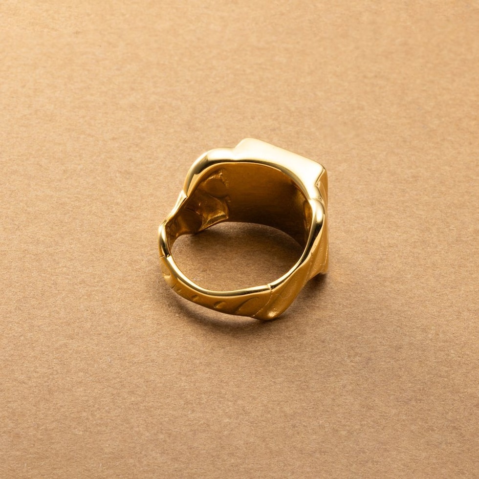 シェルがオーロラのようなニュアンスのある艶めきを放つリング。アームにウェーブの彫りが入ったデザインで、他とはひと味違ったメンズライクな手元を演出してくれます。長時間着用も安心の低アレルギーのステンレス製で、錆びにくく傷に強いからデイリー使いにぴったり◎