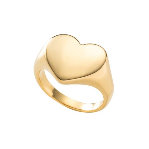 シンプルなハートモチーフが大人可愛いリング。ボリュームがありつつ、大人の手元にも合うモチーフがアクセントにぴったり。錆びにくく傷に強いステンレス製で、デイリーに活躍してくれます。長時間の着用も安心の低アレルギー素材です。