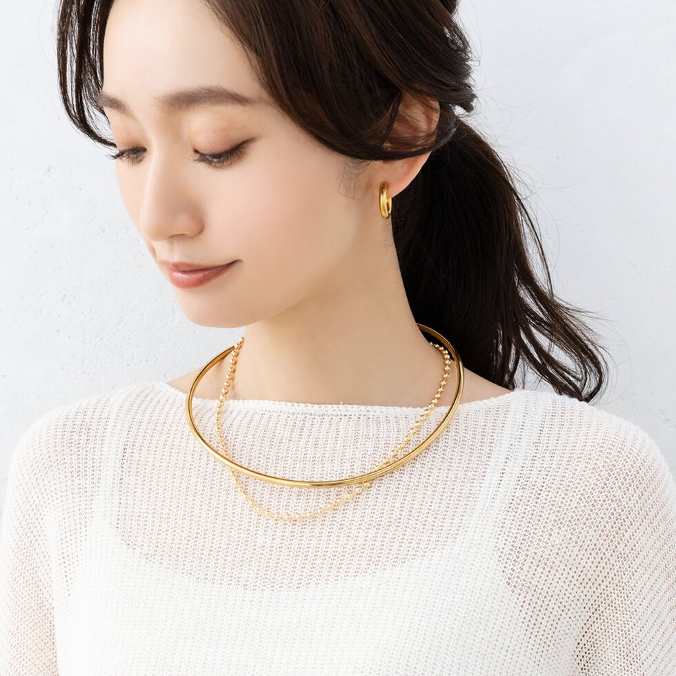 シンプルなカーブメタルのステンレス製チョーカー。こなれ感漂うシンプルな艶メタルラインで、お持ちのネックレスと重ね着けしても今っぽく決まりそう◎錆びにくいステンレス製でデイリーに活躍間違いナシ。
