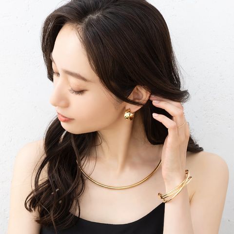 シンプルなカーブメタルのステンレス製チョーカー。こなれ感漂うシンプルな艶メタルラインで、お持ちのネックレスと重ね着けしても今っぽく決まりそう◎錆びにくいステンレス製でデイリーに活躍間違いナシ。