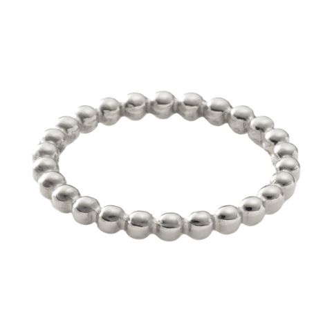 シンプルで使いやすいメタルボールリング。さりげなくも目を惹くデザインが手元にアクセントをプラスします。お手持ちのリングとの重ね付けもオススメなひと品です。