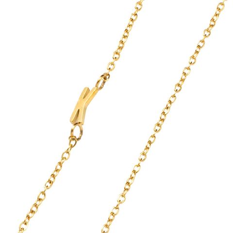 さりげなくイニシャルが煌くステンレス製ネックレス。華奢なあずきチェーンと控えめサイズのモチーフで洗練された印象に導くスキンジュエリーです。主張しすぎないデザインで重ねづけ用やプレゼントにもオススメ◎錆びにくいステンレス製でデイリーに活躍しそう。