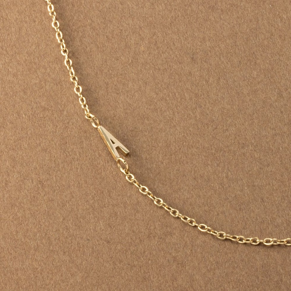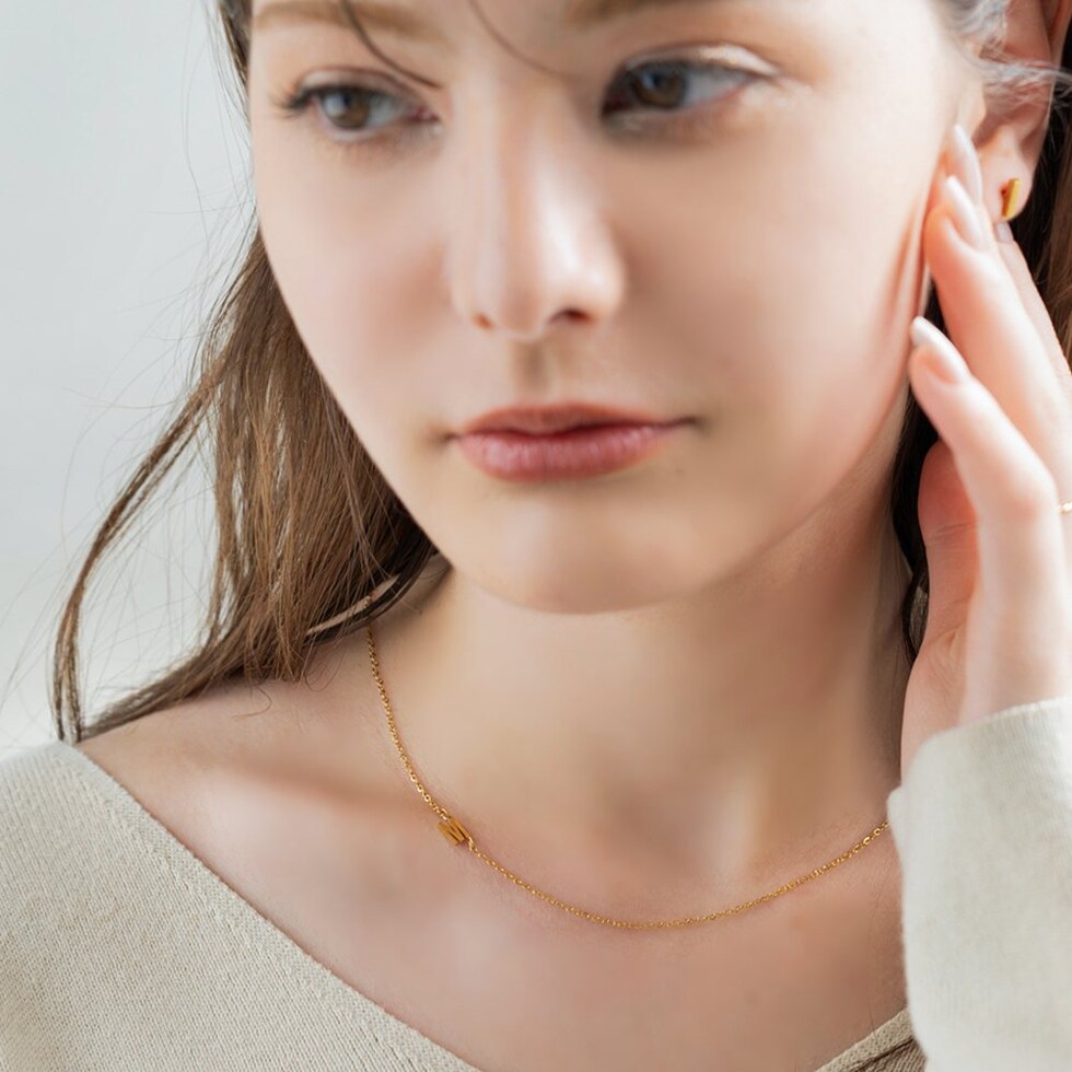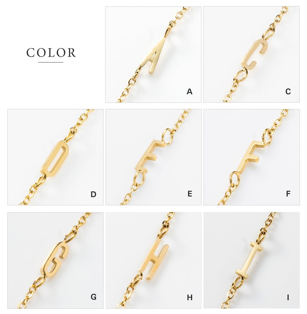さりげなくイニシャルが煌くステンレス製ネックレス。華奢なあずきチェーンと控えめサイズのモチーフで洗練された印象に導くスキンジュエリーです。主張しすぎないデザインで重ねづけ用やプレゼントにもオススメ◎錆びにくいステンレス製でデイリーに活躍しそう。