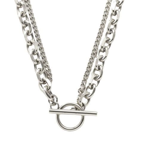 ネックレス ステンレス 金属アレルギー サージカルステンレス レディース つけっぱなし ショート チェーン 2連 マンテル ワイド ボリューム レイヤード 2way cream dot ゆうパケット [シルバー_ワンサイズ]