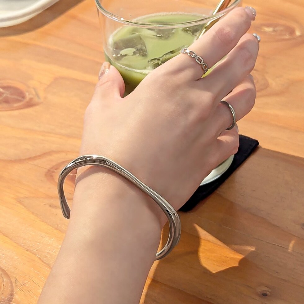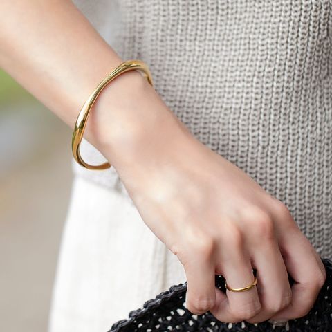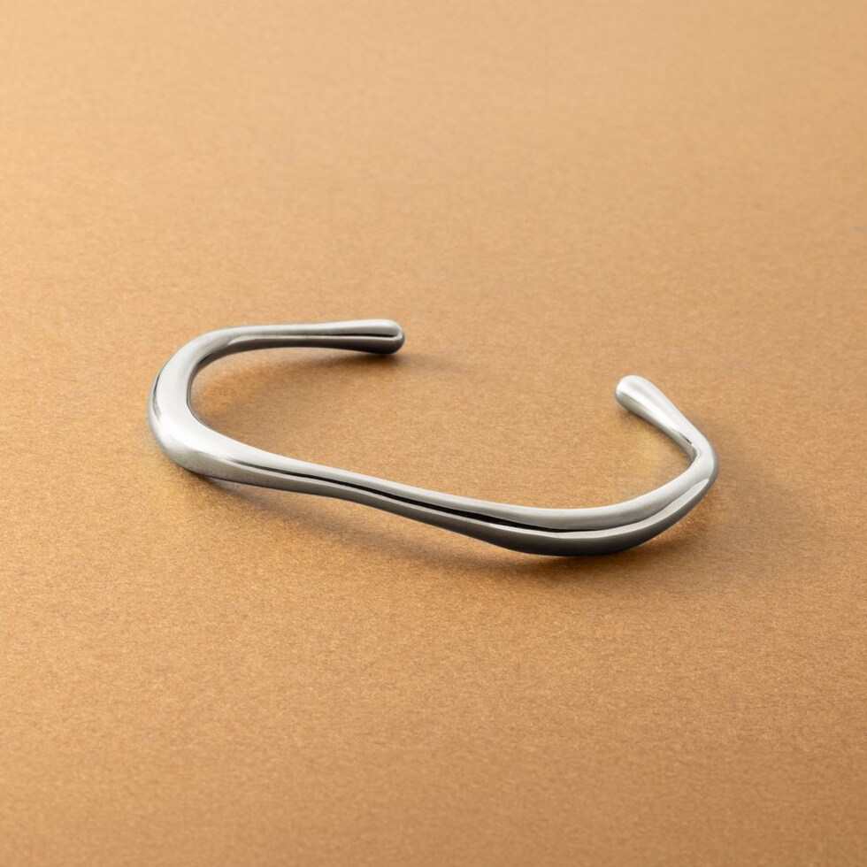 品よく艶めくニュアンスメタルのステンレス製カーブバングル。緩やかなラインと程よくぷっくり感のあるフォルムが手元にこなれた存在感をプラスします。錆びにくいステンレス製でデイリーに大活躍間違いナシ。