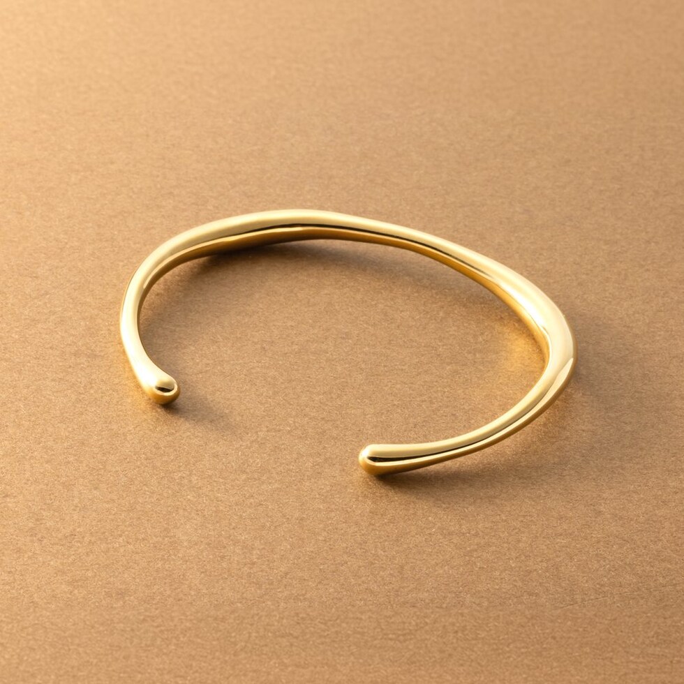バングル ステンレス 金属アレルギー サージカルステンレス レディース つけっぱなし カーブ 変形 歪み ぷっくり メタル 艶 C型 オープン cream dot ゆうパケット [ゴールド_ワンサイズ]