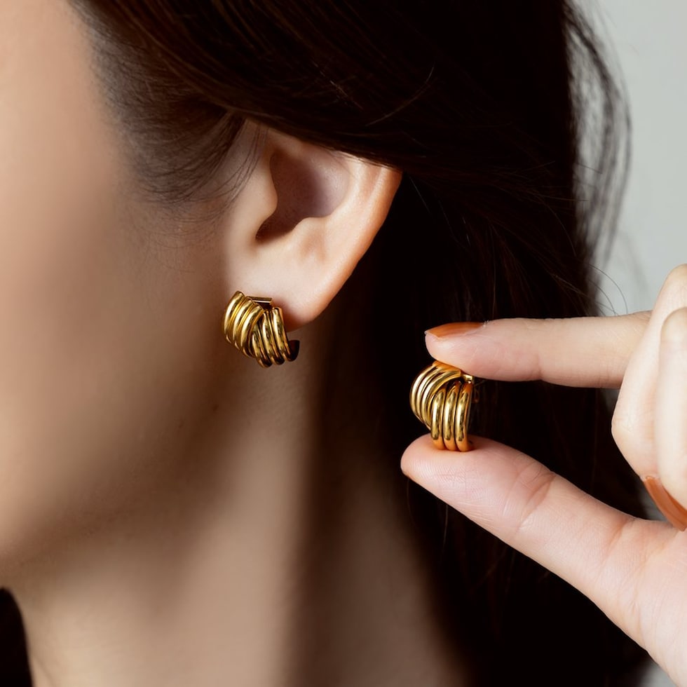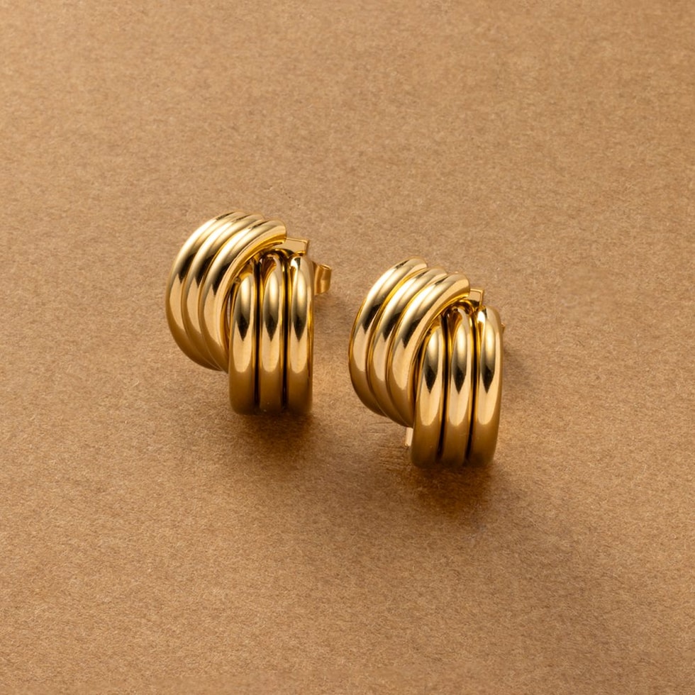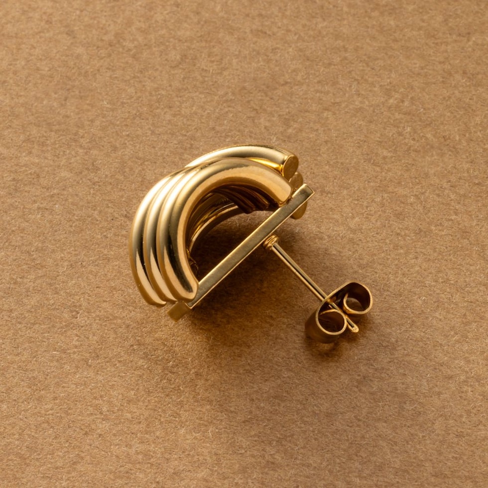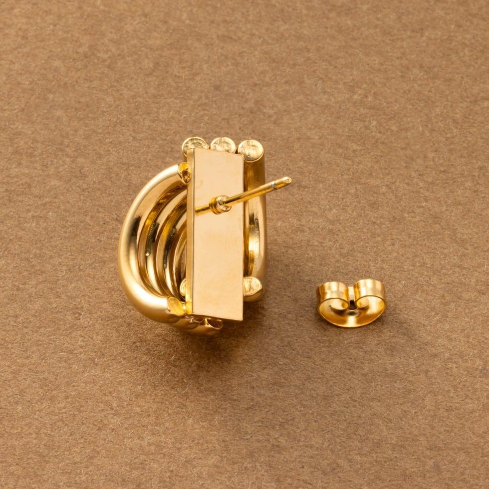 緩やかなカーブラインのレイヤード風ピアス。“こなれ感”たっぷりでグッと大人な雰囲気にアップデートしてれるひと品◎程よくボリューミーなデザインがコーデのアクセントに大活躍間違いナシなアイテムです。