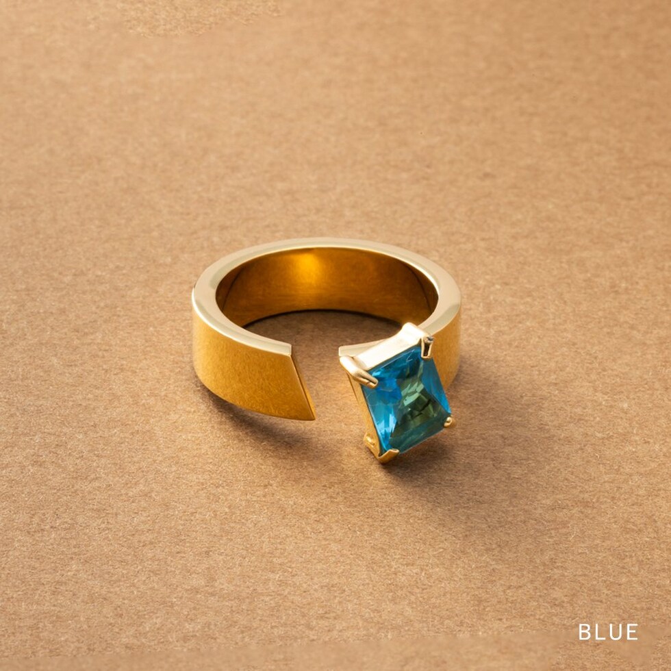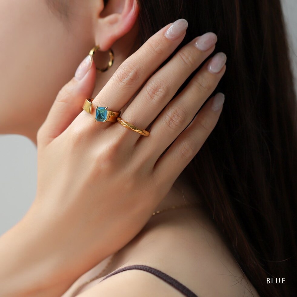 リング 指輪 ステンレス 金属アレルギー サージカルステンレス レディース つけっぱなし ビジュー スクエア アシンメトリー カラーストーン 多面カット フレーム クリア cream dot ゆうパケット [ブルー_15号]
