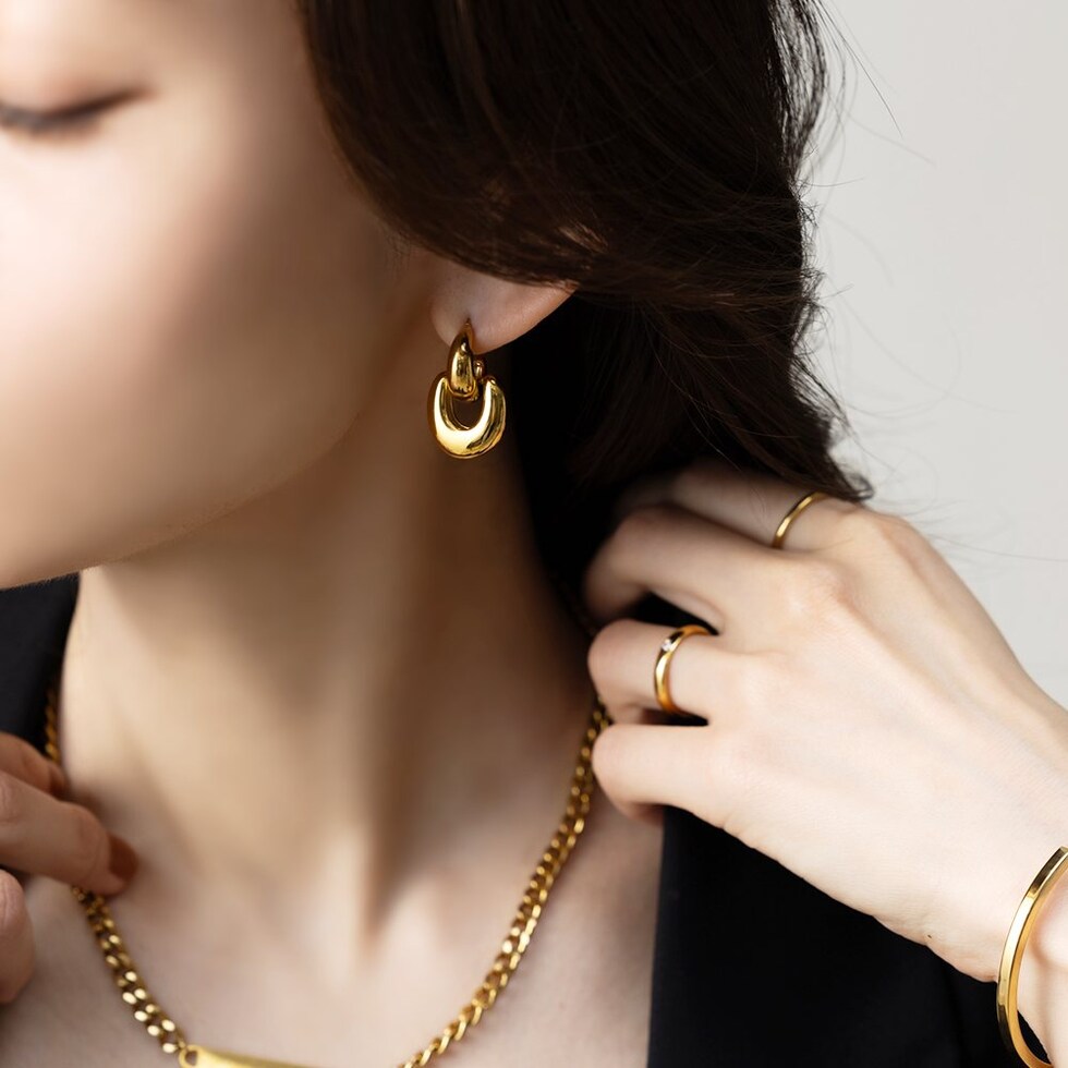 ぷっくりメタルドロップがニュアンス漂うステンレス製ピアス。ぷっくりとしたU字ラインがブランコのように揺れるスイングデザインでスマートに主張。錆びにくいステンレス製でデイリーに活躍しそう◎