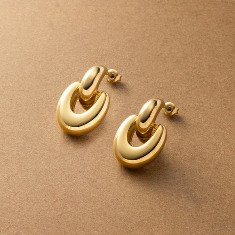 ピアス ステンレス 金属アレルギー サージカルステンレス レディース つけっぱなし ぷっくり ドロップ メタル U字 揺れる 大ぶり スイングデザイン cream dot ゆうパケット [ゴールド_ピアス]