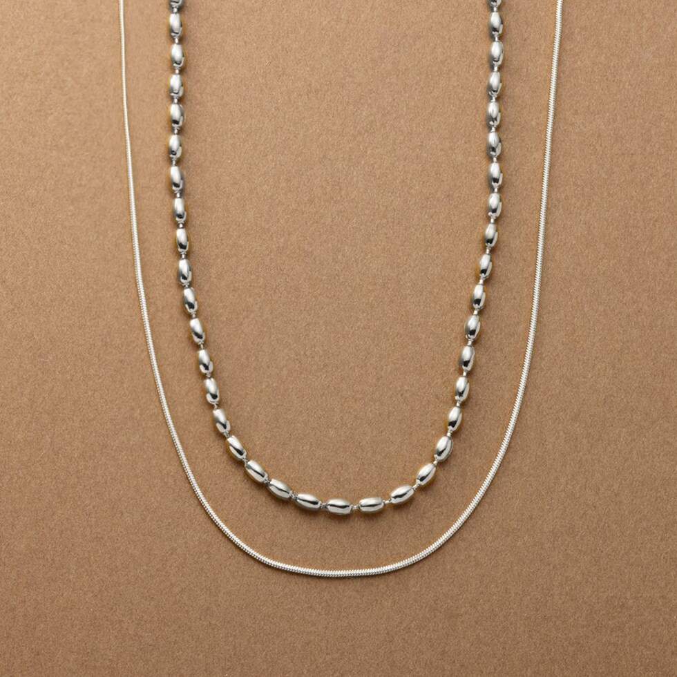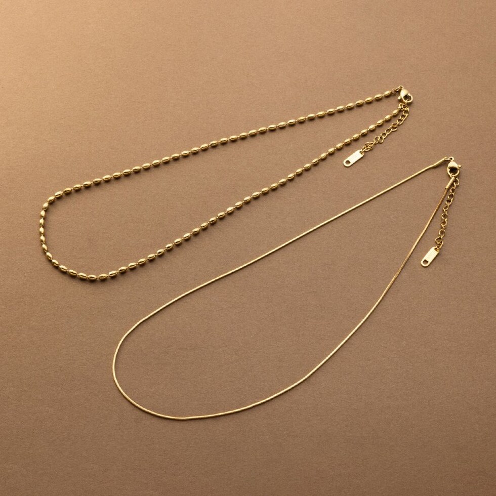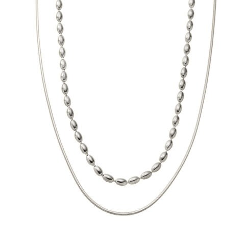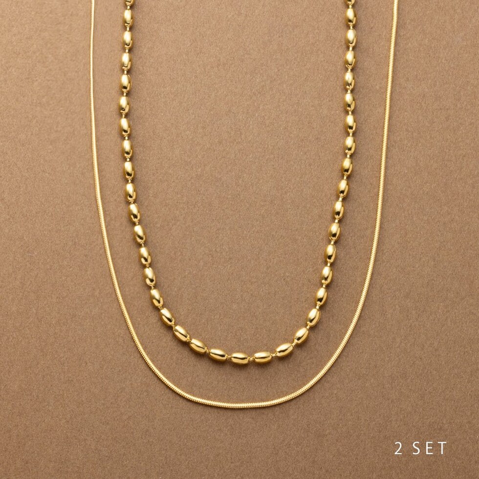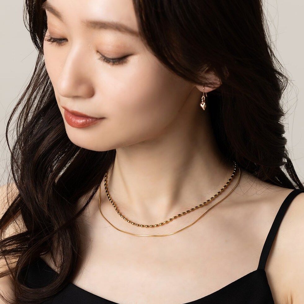 ドロップ&スネークチェーンの2セットネックレス。重ねての着用はもちろん、それぞれ単品でもお使い頂ける嬉しい3WAY仕様◎錆びにくく傷に強いステンレス製で、デイリーに使える組み合わせが嬉しいひと品です。