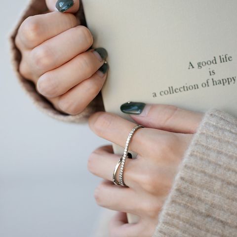 リング 指輪 金属アレルギー ニッケルフリー レディース フィンガーリング ダブルリング ビジュー ライン レイヤード風 変形 微調整可能 cream dot ゆうパケット [シルバー_フリーサイズ]