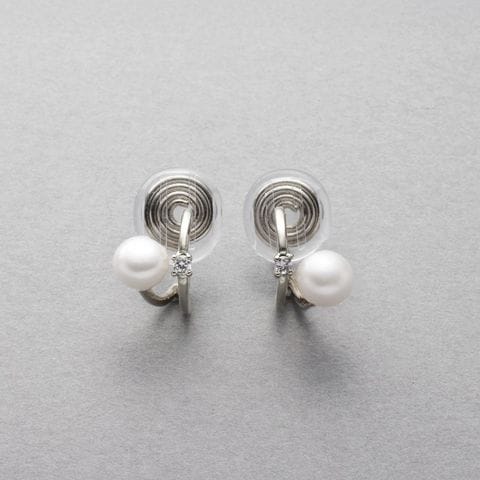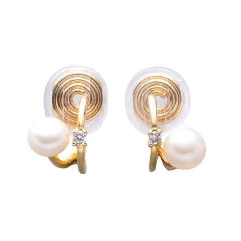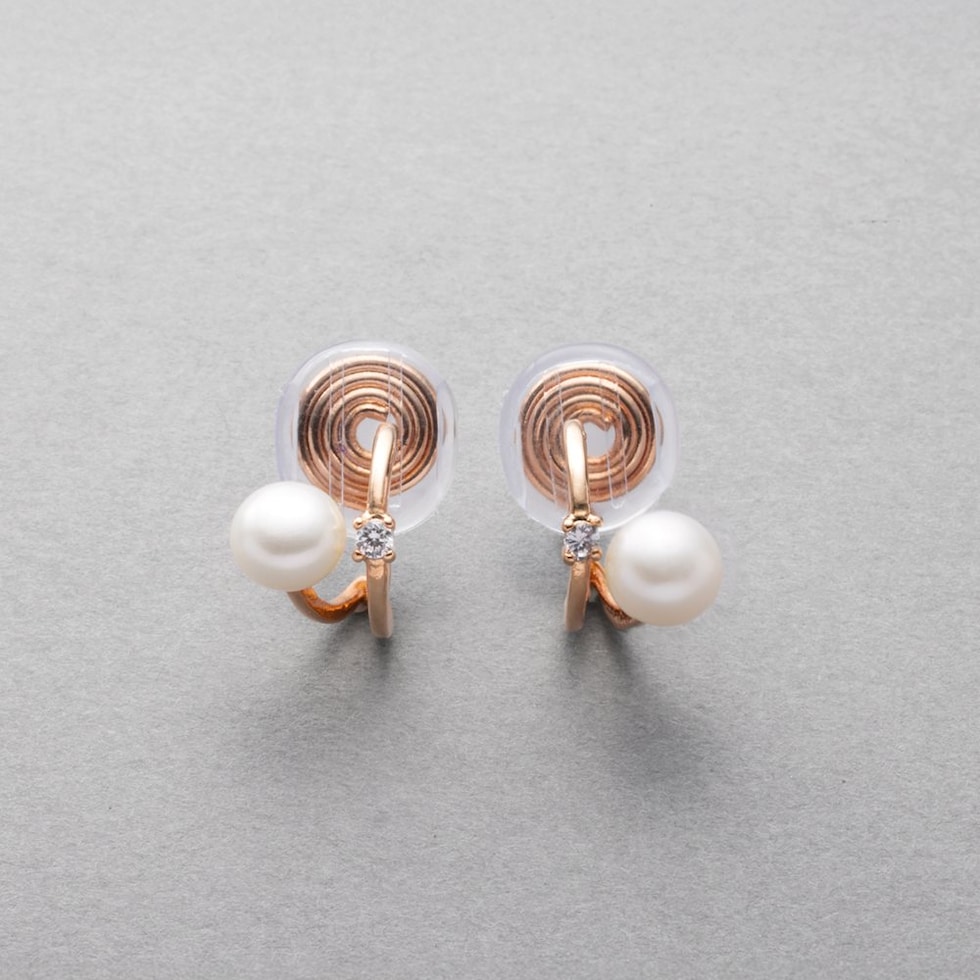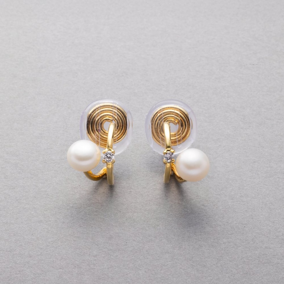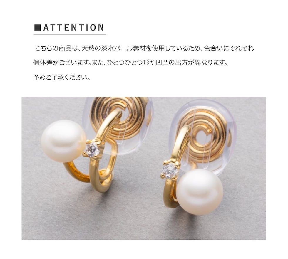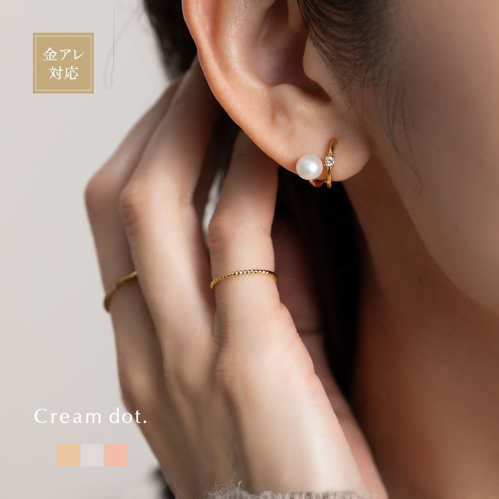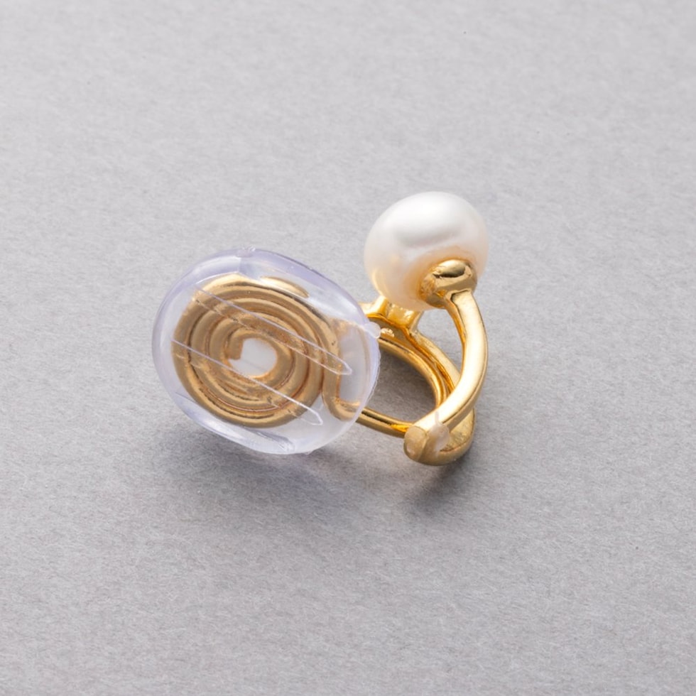 イヤリング 金属アレルギー ニッケルフリー レディース ワイヤーフィット 挟むだけ ピアス見え シリコンカバー 淡水パール cream dot ゆうパケット [ゴールド_イヤリング]