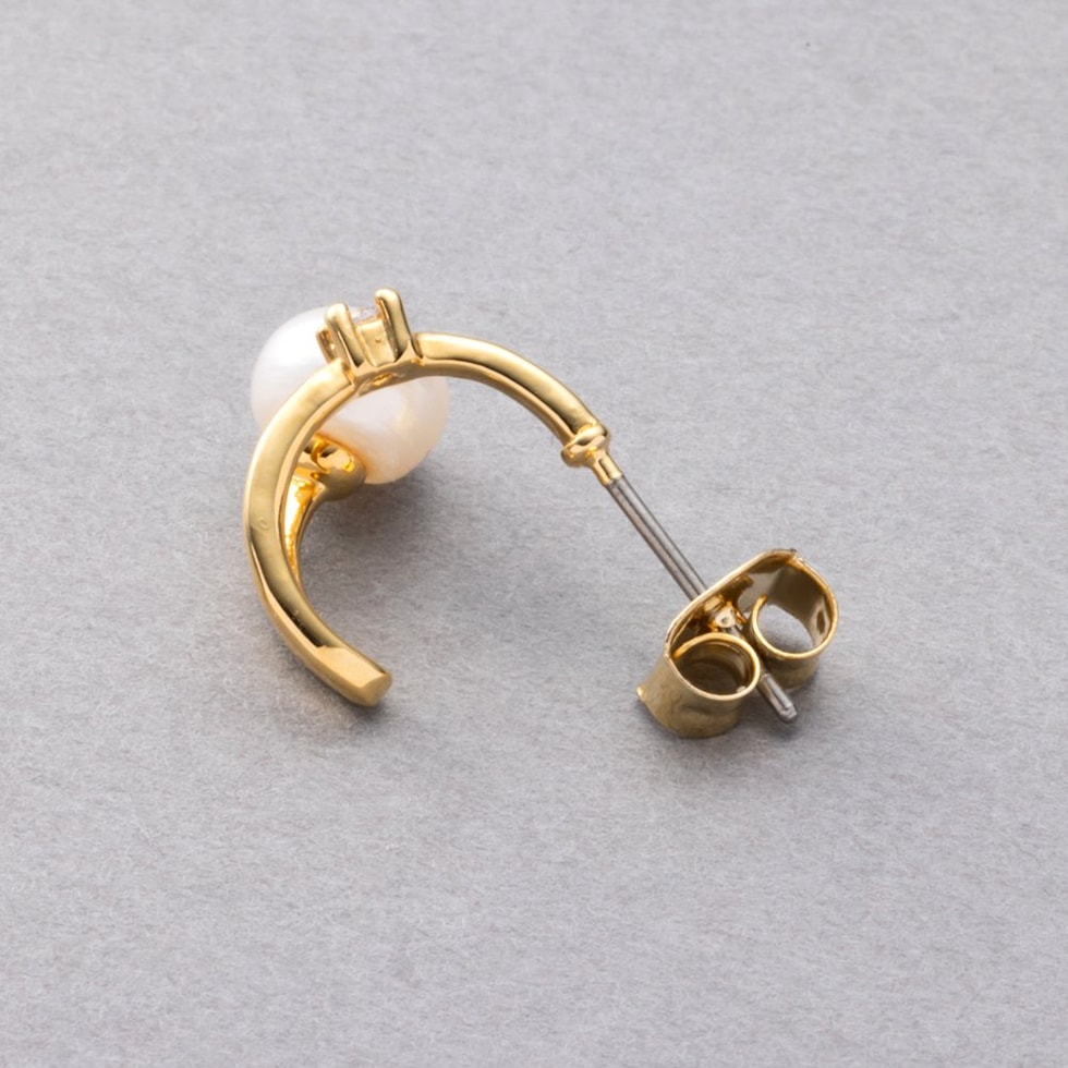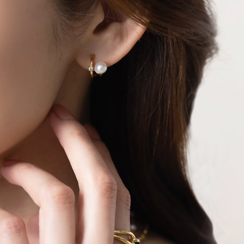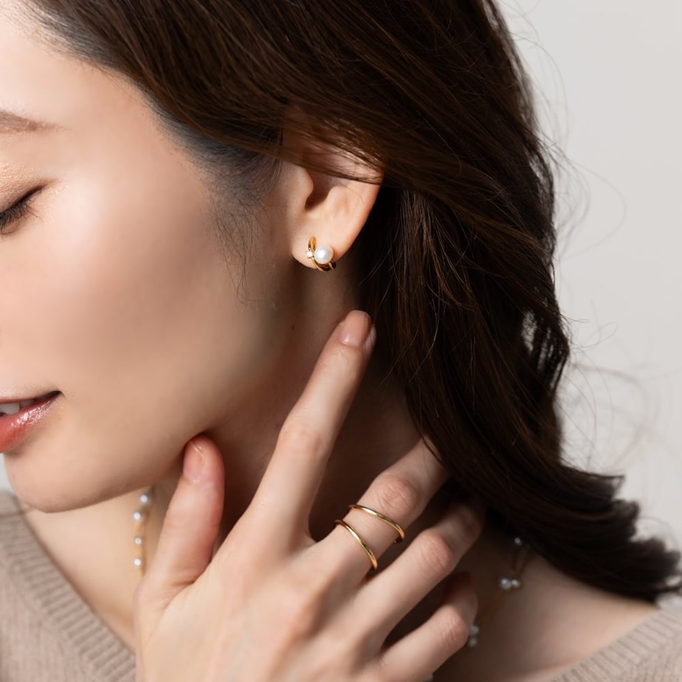 耳たぶに沿うようなカールが新鮮なイヤリング/ピアス。ビジューがさりげなく煌めき、艶やか淡水パールが上品見えする女性らしいデザイン。普段使いはもちろん、結婚式・お呼ばれ・パーティーシーンなどで活躍すること間違いなしのアイテムです。