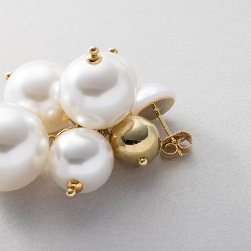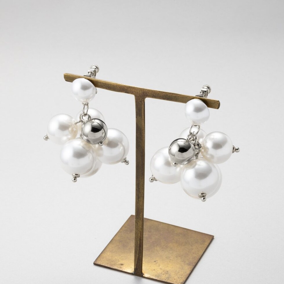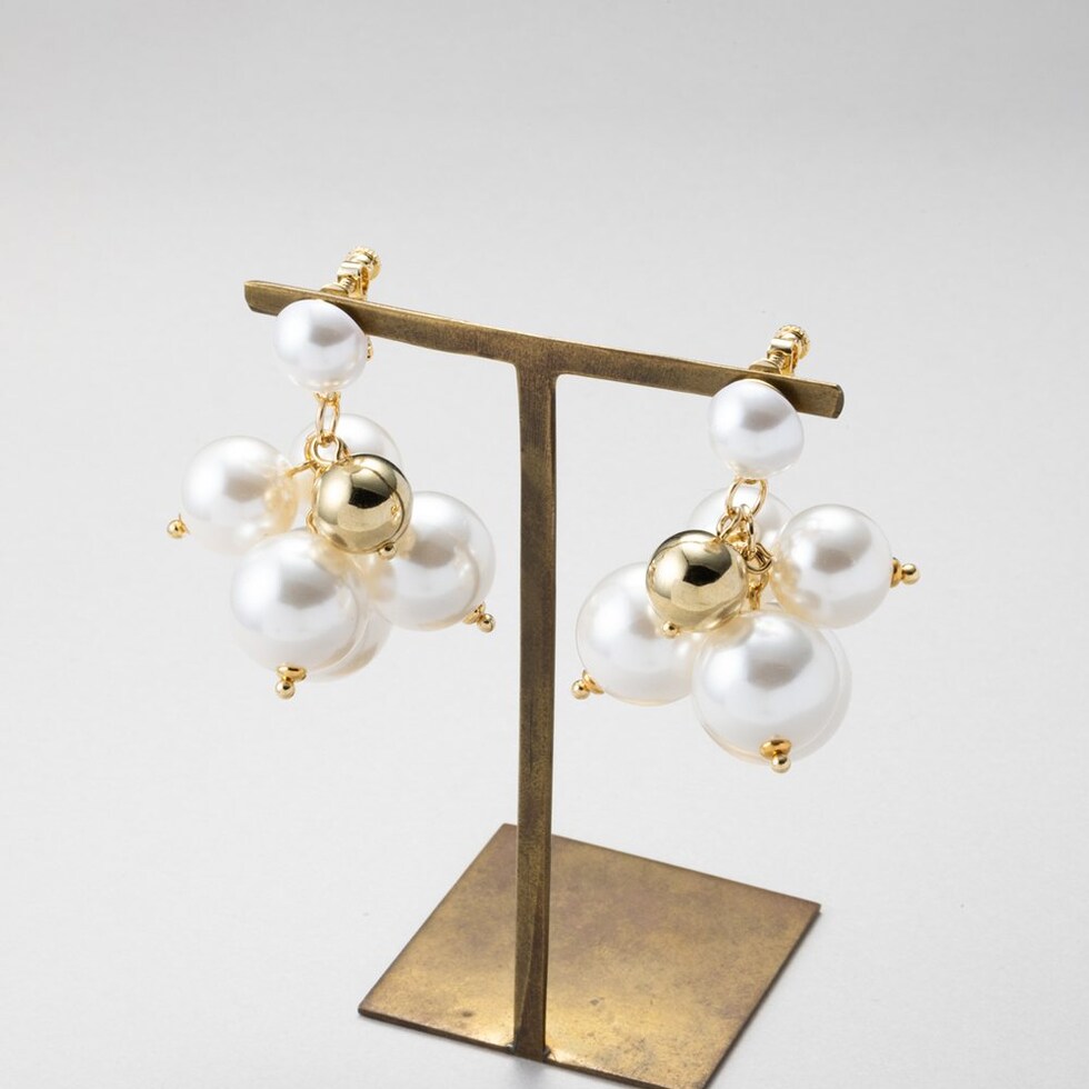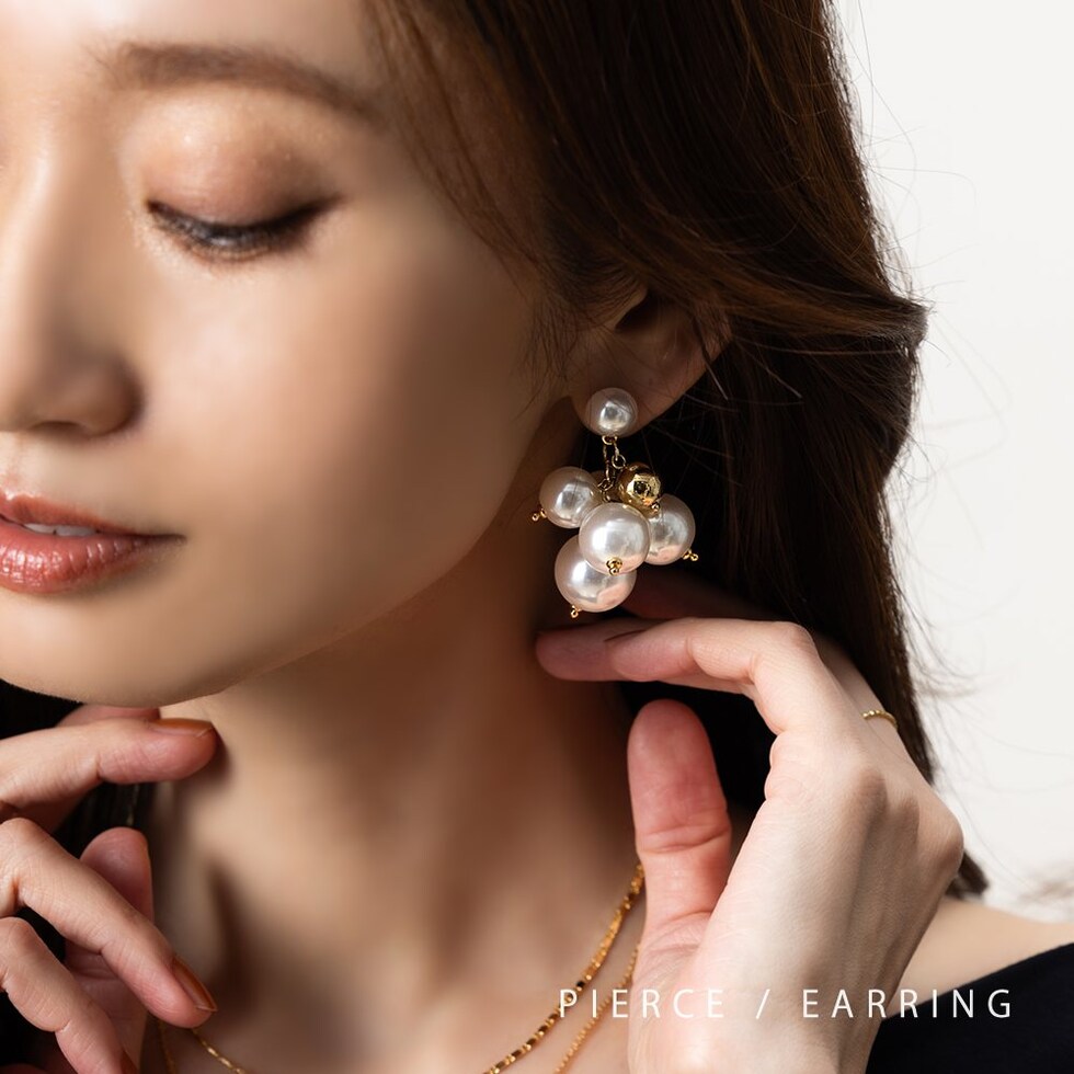 艶めくパールとメタルボールの鈴なりデザインが目を惹くピアス/イヤリング。耳元で揺らめくボリューミーなモチーフが顔周りに華やぎを添える、大人スタイルにぴったりなひと品◎お出かけはもちろんパーティーなど様々なオケージョンで活躍してくれます。