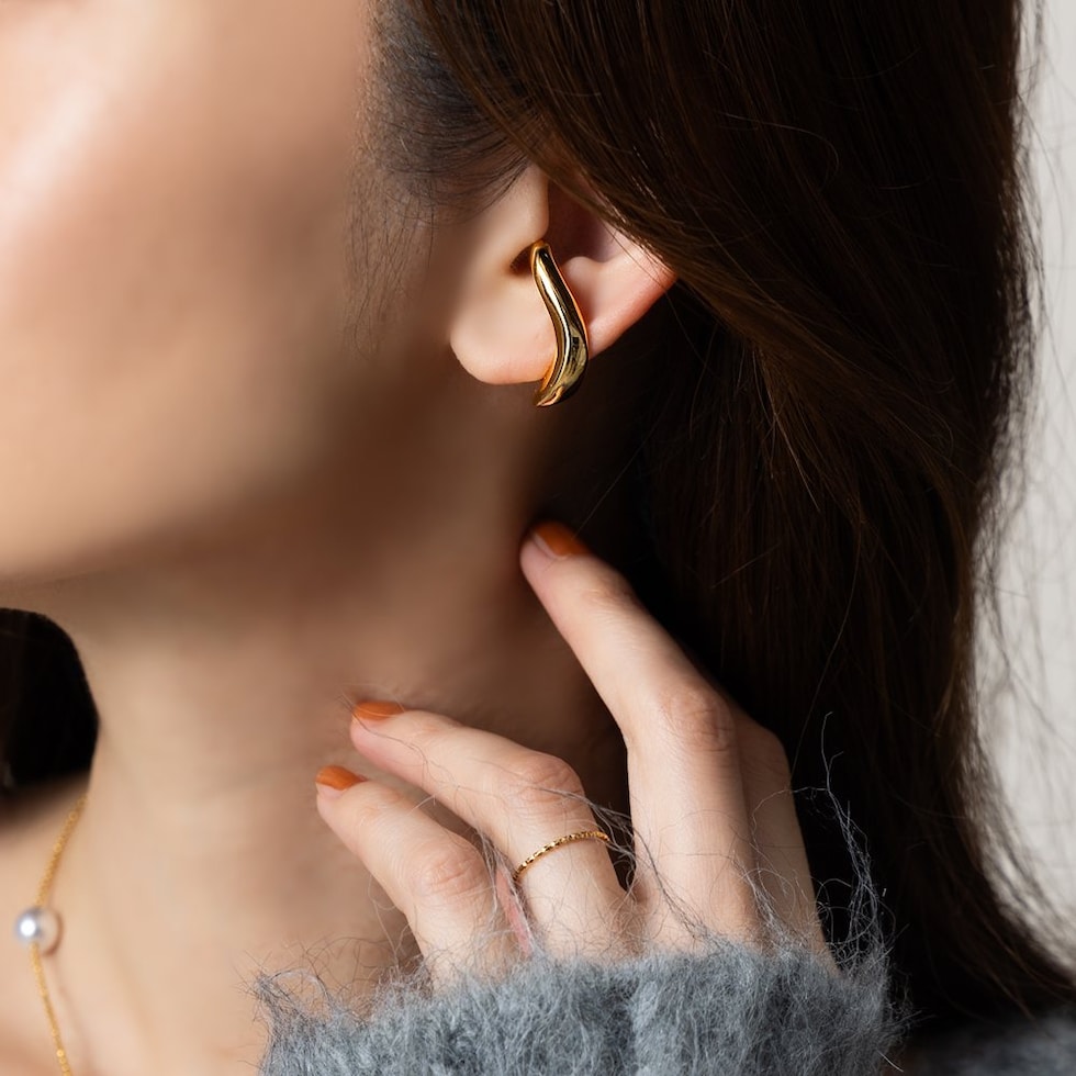ぷっくりとした艶のあるメタルモチーフが大人っぽい印象の片耳用イヤーカフ。程よく存在感のあるサイズ感で、一点投入するだけで周りと差がつくアイテムです。お手持ちのピアスと合わせても◎低アレルギーのニッケルフリー素材を使用しているので、長時間の着用も安心です。