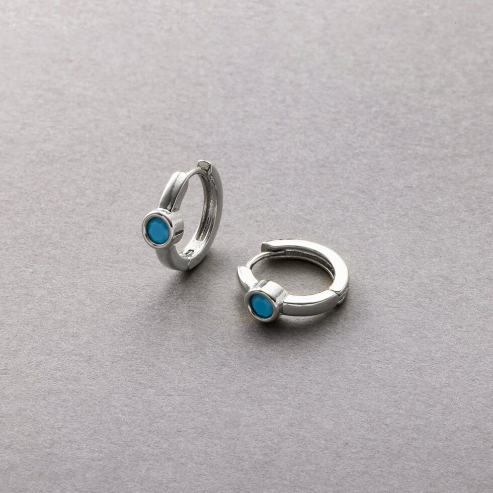 ピアス 金属アレルギー ニッケルフリー レディース フープ ターコイズカラー 小ぶり 中折れ キャッチレス 開閉式 cream dot ゆうパケット [シルバー_ピアス]