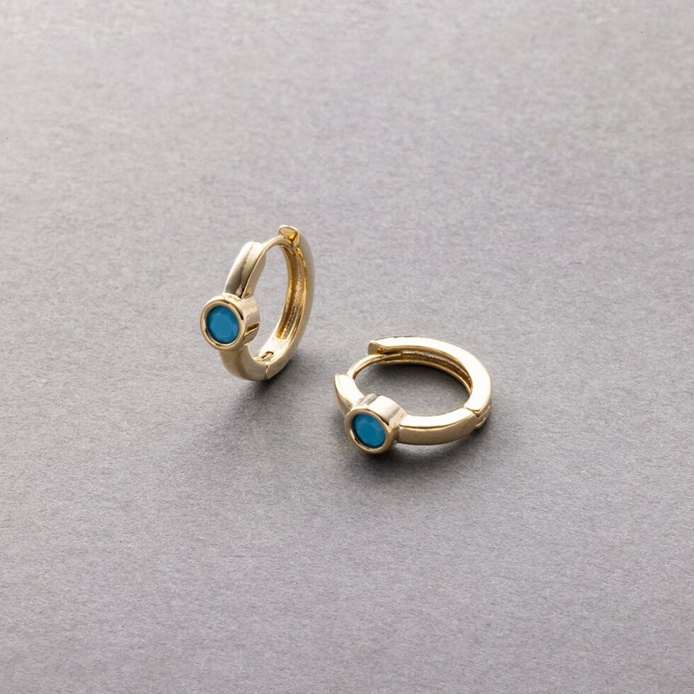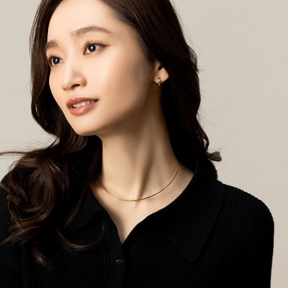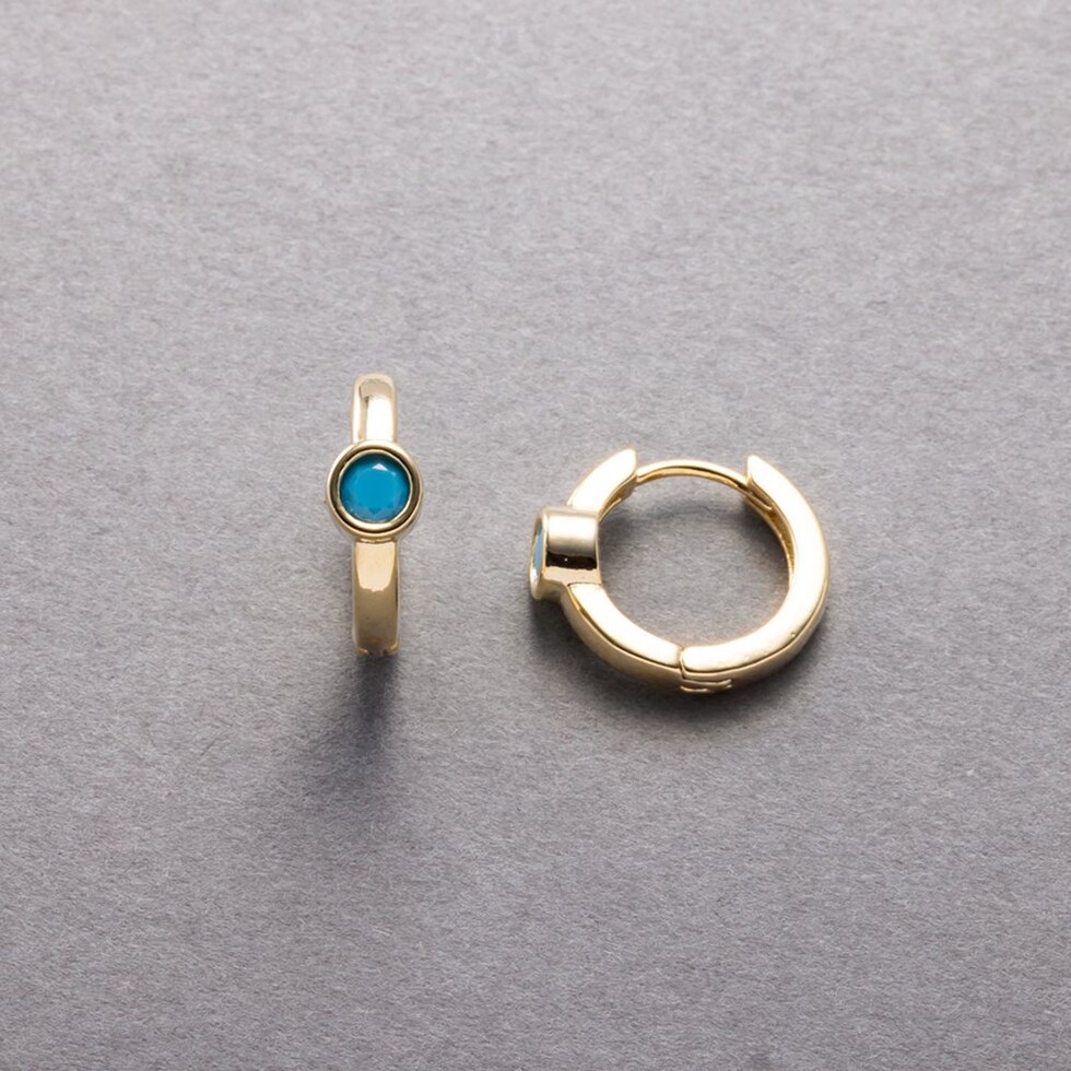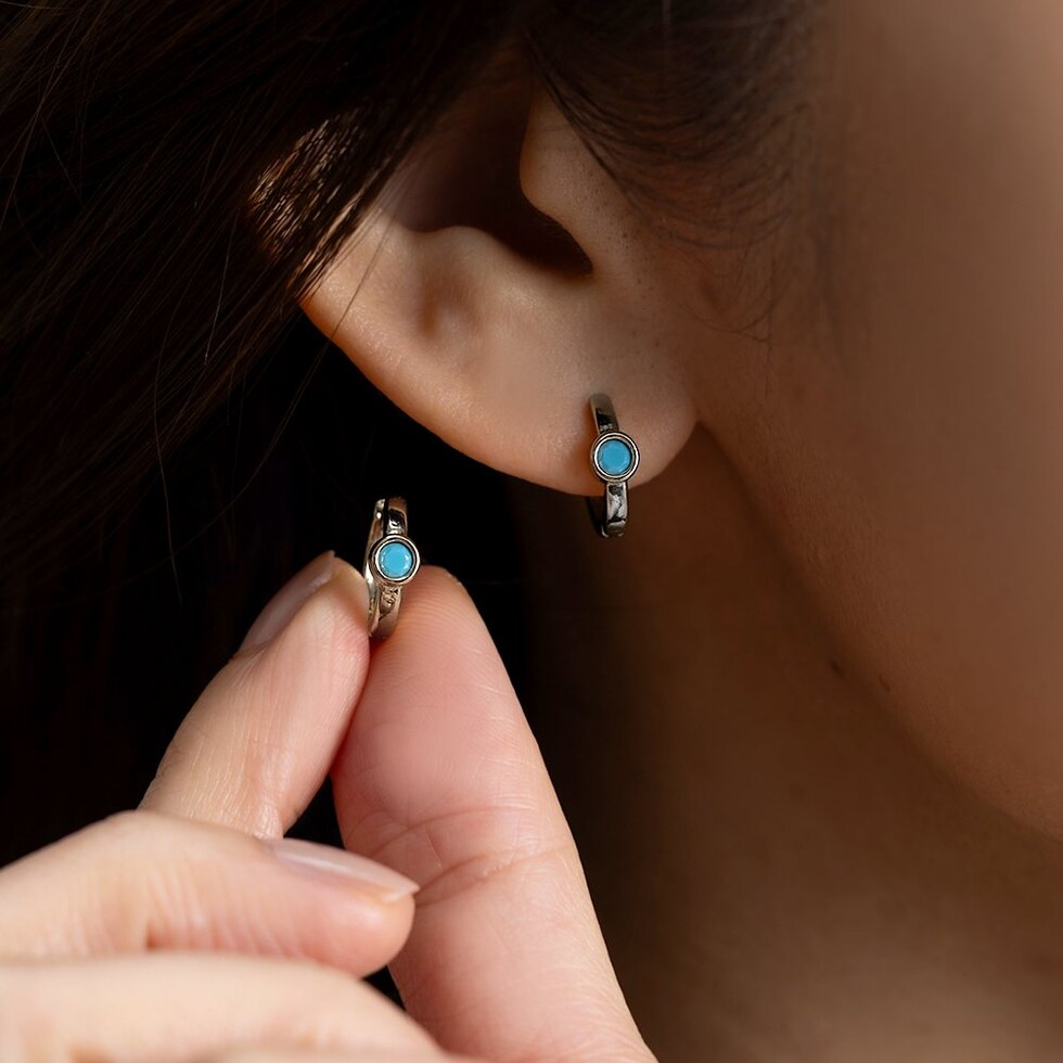 小ぶりなサイズ感とターコイズカラーが目を惹くフープピアス。さりげなく煌めく鮮やかなブルーを大人な雰囲気で楽しめるひと品。さっと着けるだけでこなれた印象を演出してくれます。