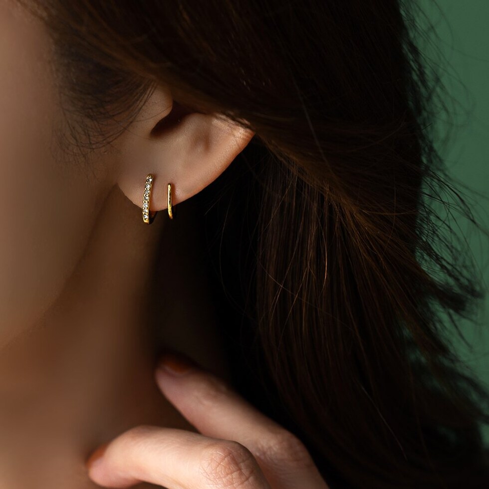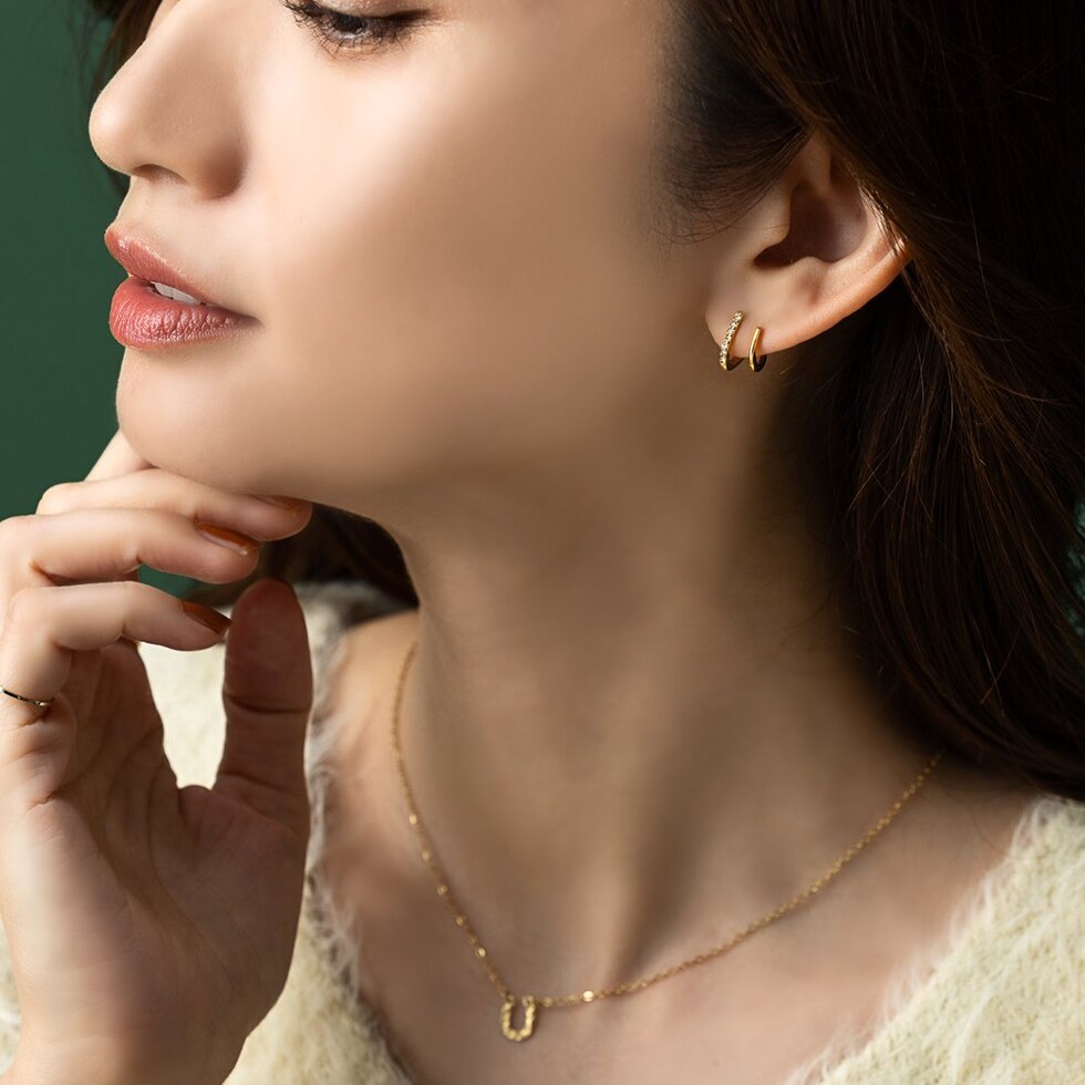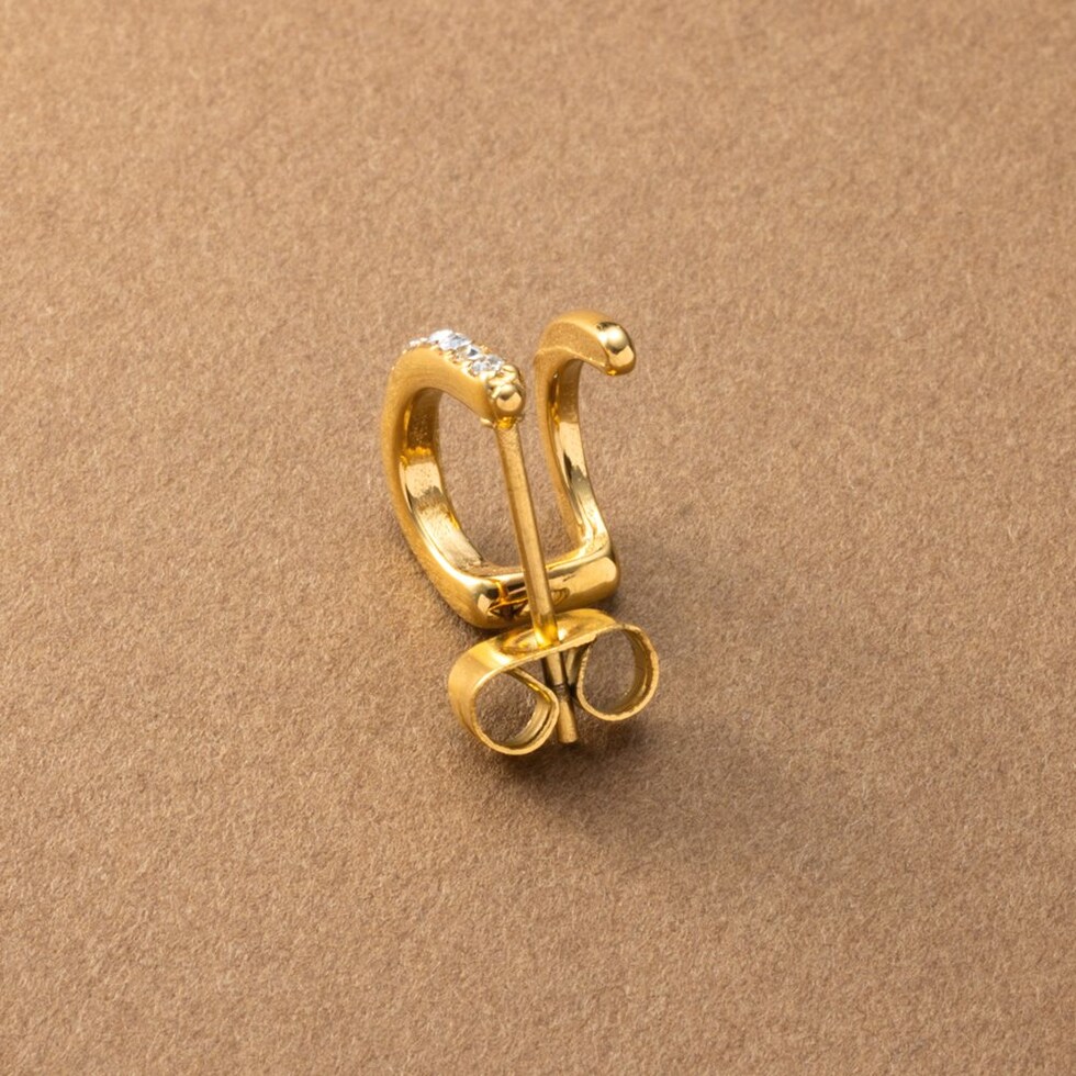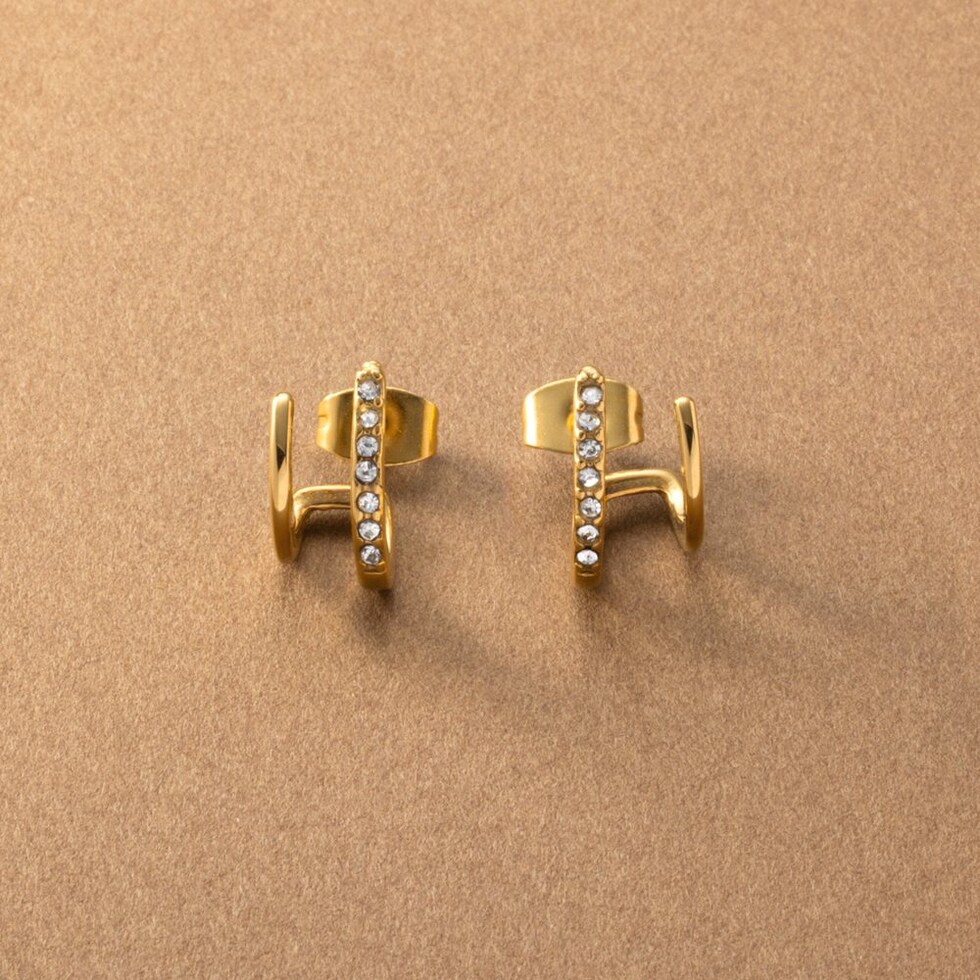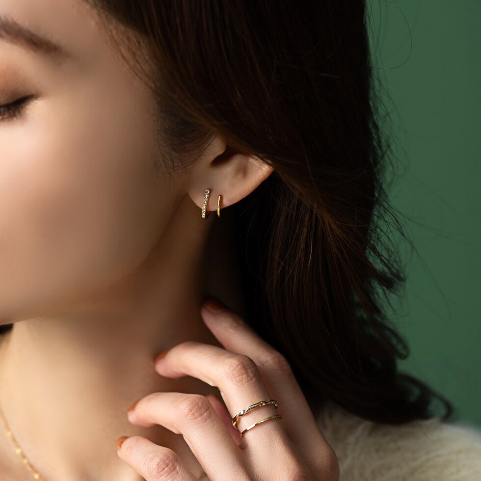 重ね着けしてるようなダブルラインのスタッドピアス。小ぶりながら程よい存在感と個性あるデザインが、さりげない大人の上品さを演出。シンプルな見た目と錆びにくく傷に強いステンレス製だからデイリーに活躍してくれそう。長時間の着用も安心の低アレルギー素材です。