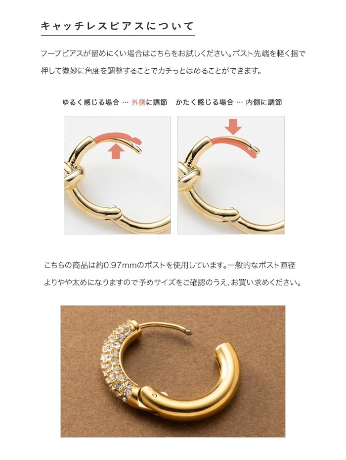 ピアス ステンレス 金属アレルギー サージカルステンレス レディース フープ つけっぱなし パヴェ ビジュー メタル 存在感 ワイド 中折れ キャッチレス 開閉式 cream dot ゆうパケット [シルバー_ピアス]